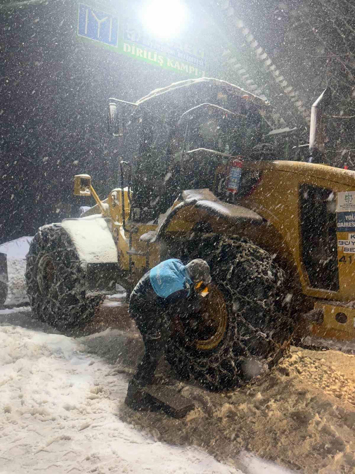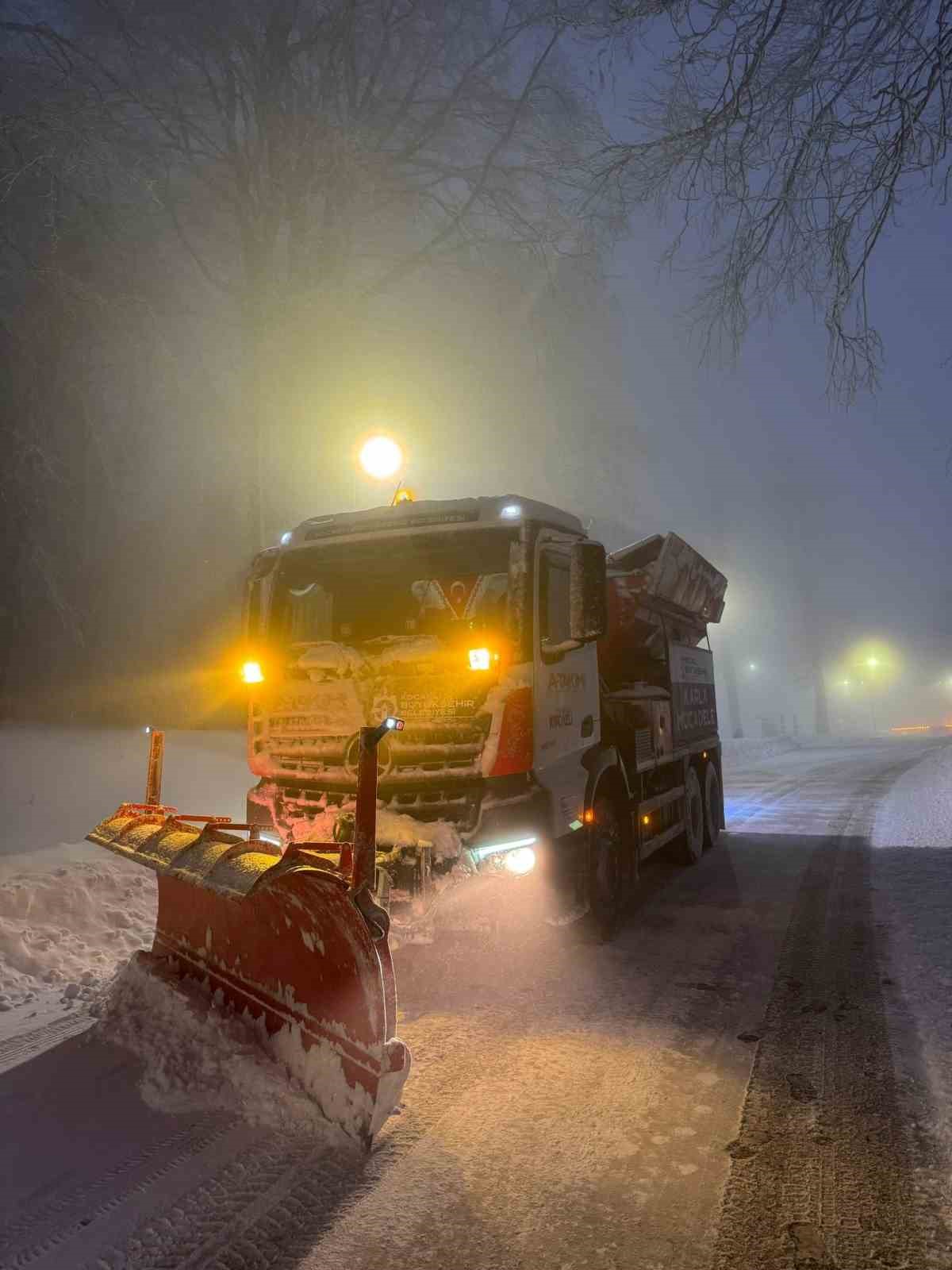Kocaeli’de belediye ekipleri, kentte etkili olan kar yağışı nedeniyle ulaşımda aksama yaşanmaması için çalışmalarını aralıksız sürdürüyor.