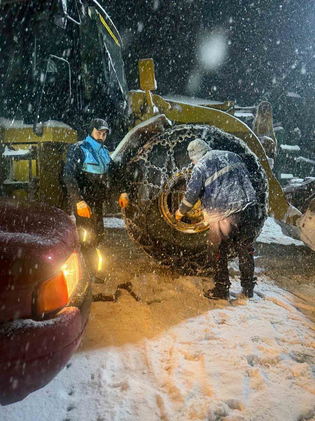 Olumsuz hava şartlarına rağmen gece boyu sahada görev yapan ekipler, soğuk hava ve yağış etkisini yitirene kadar çalışmalarına 7 gün 24 saat esasına göre devam edecek.