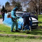 Kocaeli’de belediye ekipleri, park ve bahçelerde yürüttükleri ot biçme ile ağaç budama çalışmaları sırasında, çevrede park halinde bulunan araçların zarar görmemesi için brandalarla özel önlem alıyor.