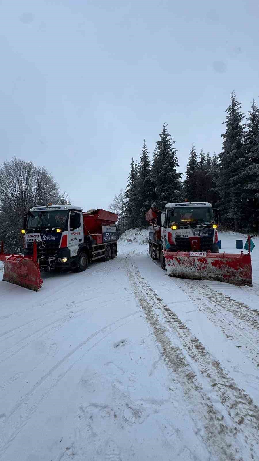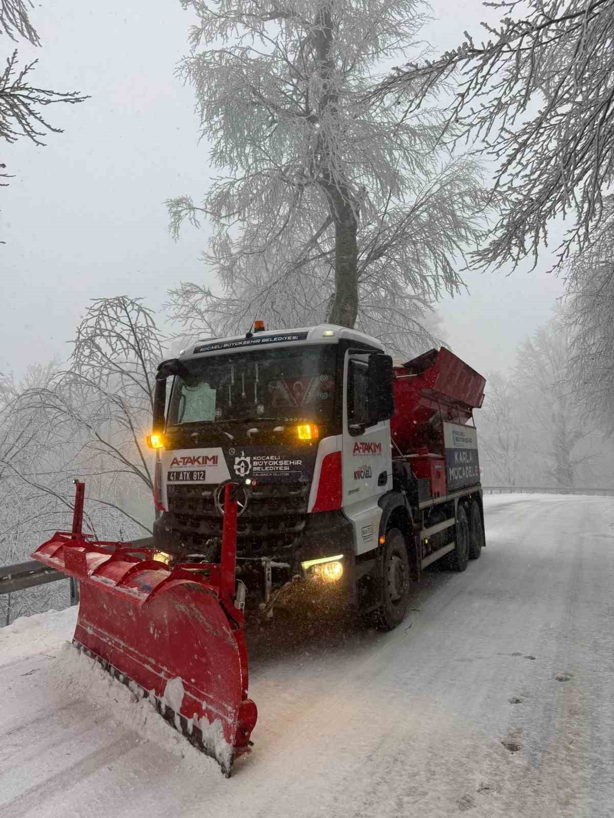 Kocaeli’de gece saatlerinde başlayan kar yağışı yüksek kesimlerde etkili olmaya devam ediyor. Özellikle ilçe merkezlerinin dışındaki rakımı yüksek bölgelerde kar kalınlığı artarken, belediye ve karla mücadele ekipleri sahada teyakkuz halinde. Kocaeli Büyükşehir Belediyesi Yol ve Bakım Dairesi Başkanlığı koordinesinde yürütülen karla mücadele çalışmalarında A Takımı ve Yol Bakım Timleri aktif görev alıyor. Çalışmalara Park ve Bahçeler Dairesi Başkanlığı’na bağlı ekipler de tam destek veriyor. Toplam bin 200 personelin görev aldığı çalışmalarda, yeni alınan araçlarla birlikte 354 araç ve iş makinesi sahada aktif olarak kullanılıyor. Kar küreme, tuzlama ve buzlanmaya karşı önleyici çalışmalar 24 saat esasına göre sürdürülüyor.