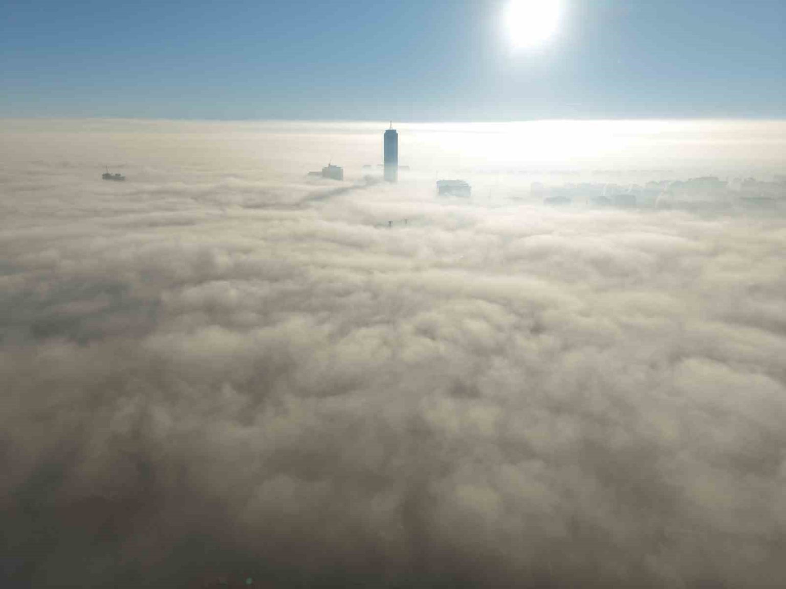 Konya şehir merkezinde sabah saatlerinde etkili olan yoğun sis, dron ile görüntülendi.
