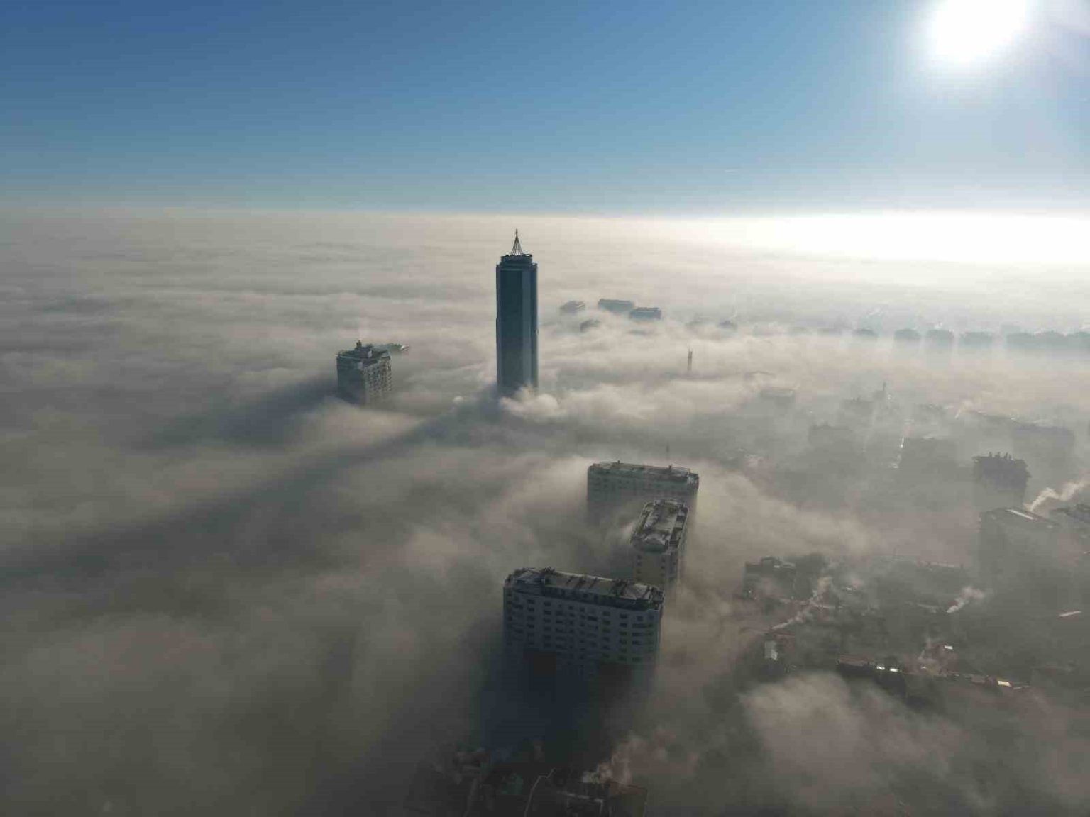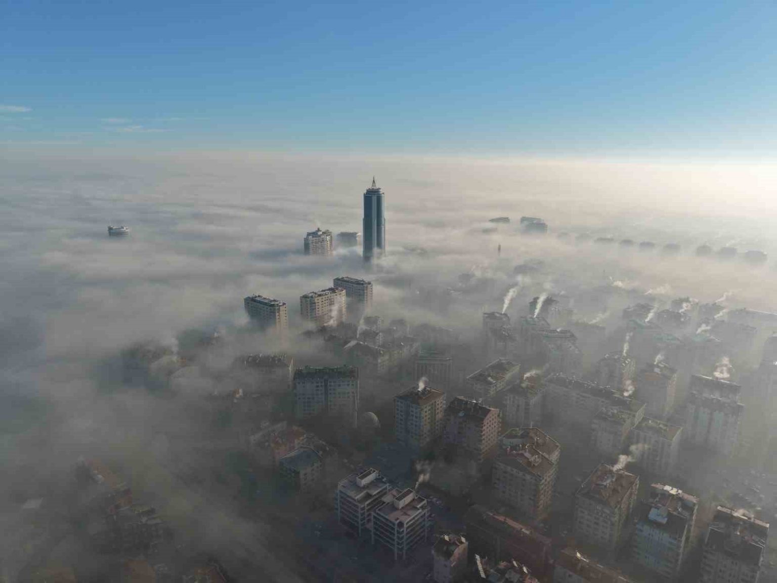 Konya’da hava sıcaklığı gece saatlerinde en düşük -2 derece olarak ölçülürken, en yüksek 9 derece olması tahmin ediliyor. Gece saatlerinde etkili olan soğuk hava ise sabah saatlerinde sisli bir havaya döndü. Şehir adeta sis denizinde kaybolurken, görüş mesafesi azaldı. Şehrin birçok noktasında etkili olan sis nedeniyle kent merkezindeki binalar da yer yer görünmez hale geldi. Sis ilerleyen saatlerde etkisini yitirmeye başlarken, dron ile çekilen görüntüler ise eşsiz manzaralar oluşturdu.