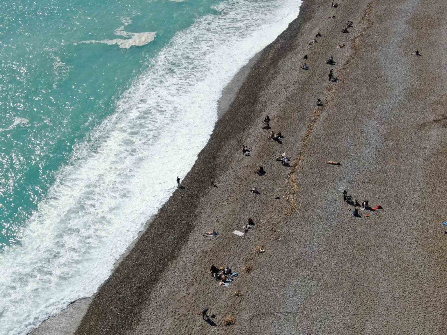 Antalya’da son günlerde etkili olan sağanak ve şiddetli rüzgar yerini bugün güneşli havaya bıraktı. Hava sıcaklığının 18 dereceye kadar yükselmesiyle birlikte hafta sonunu fırsat bilen kent sakinleri ve turistler Konyaaltı Sahili’ne akın etti. Sel suları ve şiddetli rüzgarın denize getirdiği, ağaç dalları ve kargıların kıyıya vurduğu sahilde aldığı sahilde, bazı vatandaşlar denize girmeyi tercih etti, bazıları ise aileleriyle sahil bandında vakit geçirdi. Bazı hava tutkunları ise paraşütleriyle gökyüzünde tur attı.