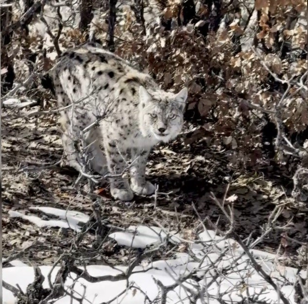 Erzincan’ın Refahiye ilçesine bağlı Baştosun köyünde, nesli tükenme tehlikesi altındaki vaşak görüntülendi.