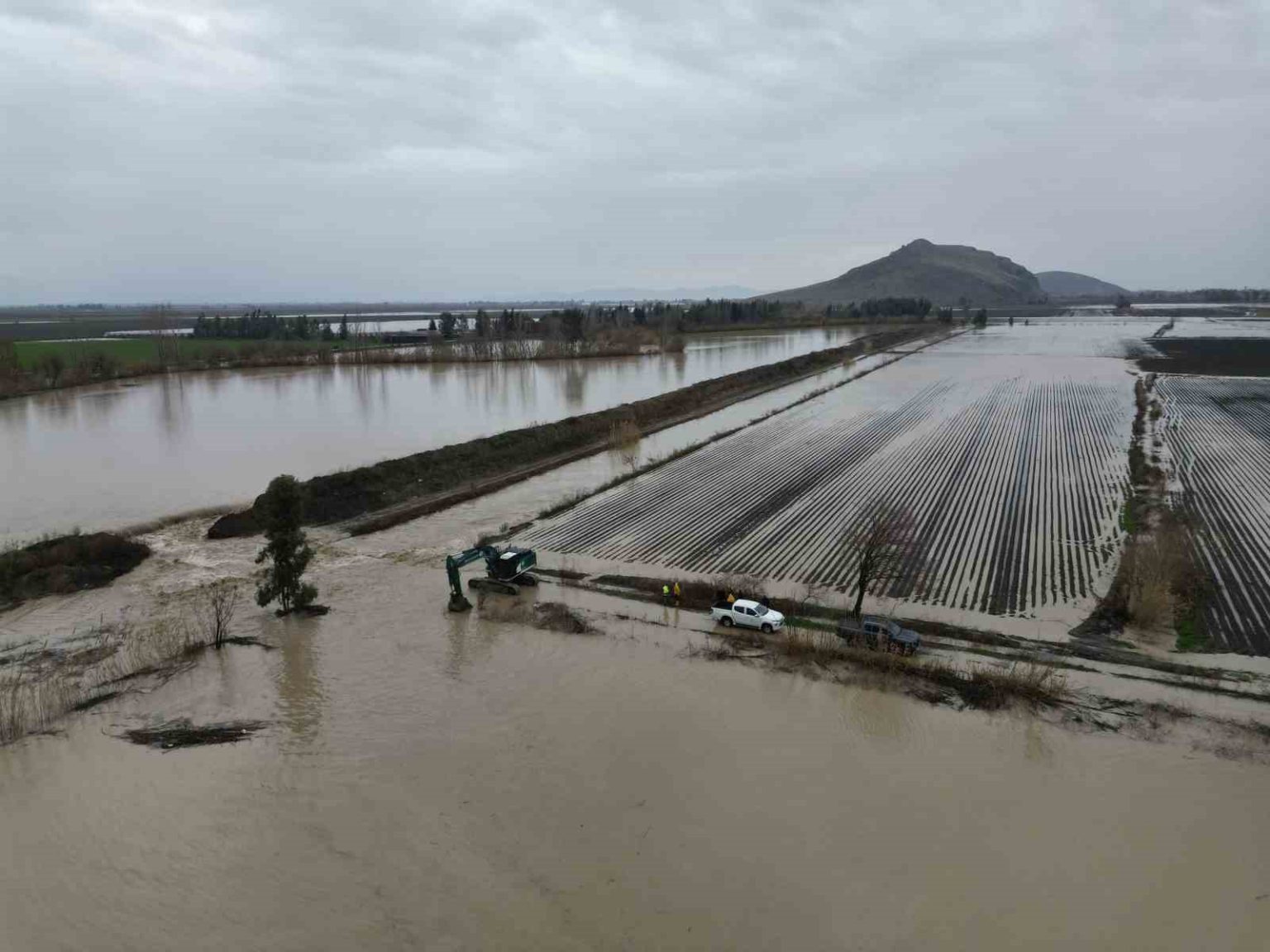 Adana’nın Kozan ilçesinde etkisini sürdüren sağanak yağış taşkınlara yol açtı. Debisi hızla yükselen Sumbas Çayı taştı ve çevresindeki tarım arazileriyle yerleşim yerlerini su altında bıraktı. UNESCO Dünya Geçici Miras Listesi’nde yer alan Anavarza Antik Kenti’nin olduğu alanda su taşkını riskiyle karşı karşıya kalınca Kozan Belediyesi ekipleri iş makineleri ile bölgede saha çalışmalarını sürdürüyor.