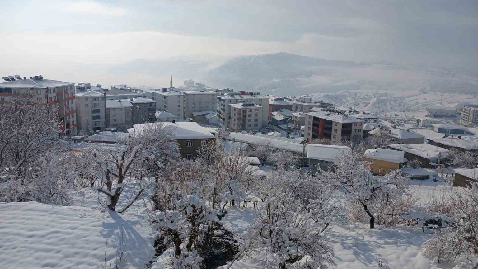 Kar yağışından sonra ilçe genelinde beyaz örtü hakim olurken, ağaçlar ve meyve bahçeleri yoğun kar tabakasının altında kaldı. Özellikle yüksek kesimlerde kar kalınlığının daha fazla olduğu gözlendi.