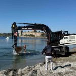 Muğla’nın Bodrum ilçesinde Kumbahçe sahilinde, kamusal alanlardaki işgallerin kaldırılması için başlatılan çalışmalar sürüyor. Ekipler, Azmakbaşı mevkisinde bir işletmenin dere yatağına yaptığı beton su basmanını iş makineleriyle kaldırdı.