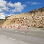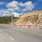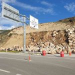 Kumluca-Kemer karayolunda toprak kayması, heyelanı önlemek için örülen duvardaki kayalar yola saçıldı