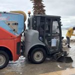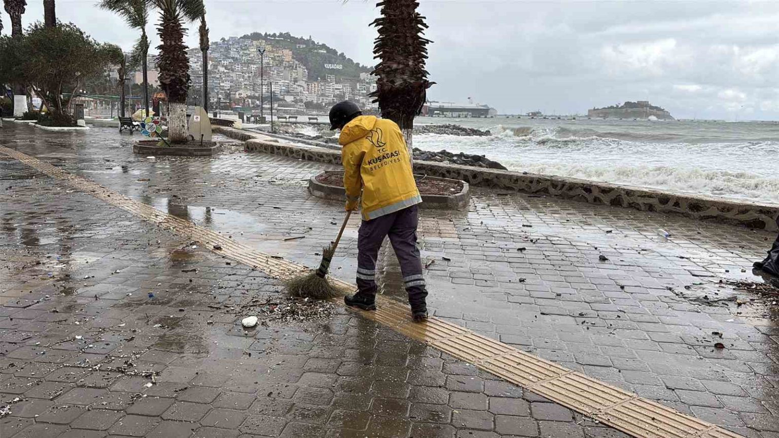 Kuşadası Belediyesi, dün kentte etkili olan sağanak ve fırtınanın ardından yağmur suyu ile taşan deniz sularının sahil bandına getirdiği mil ile çöp benzeri atıklara anında müdahale edip, temizledi.