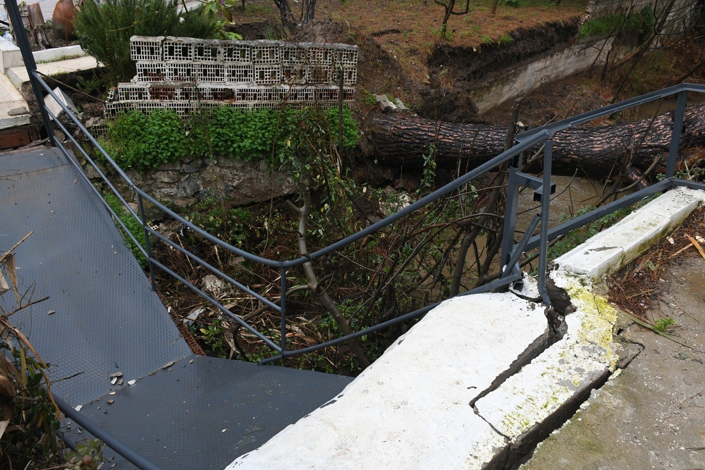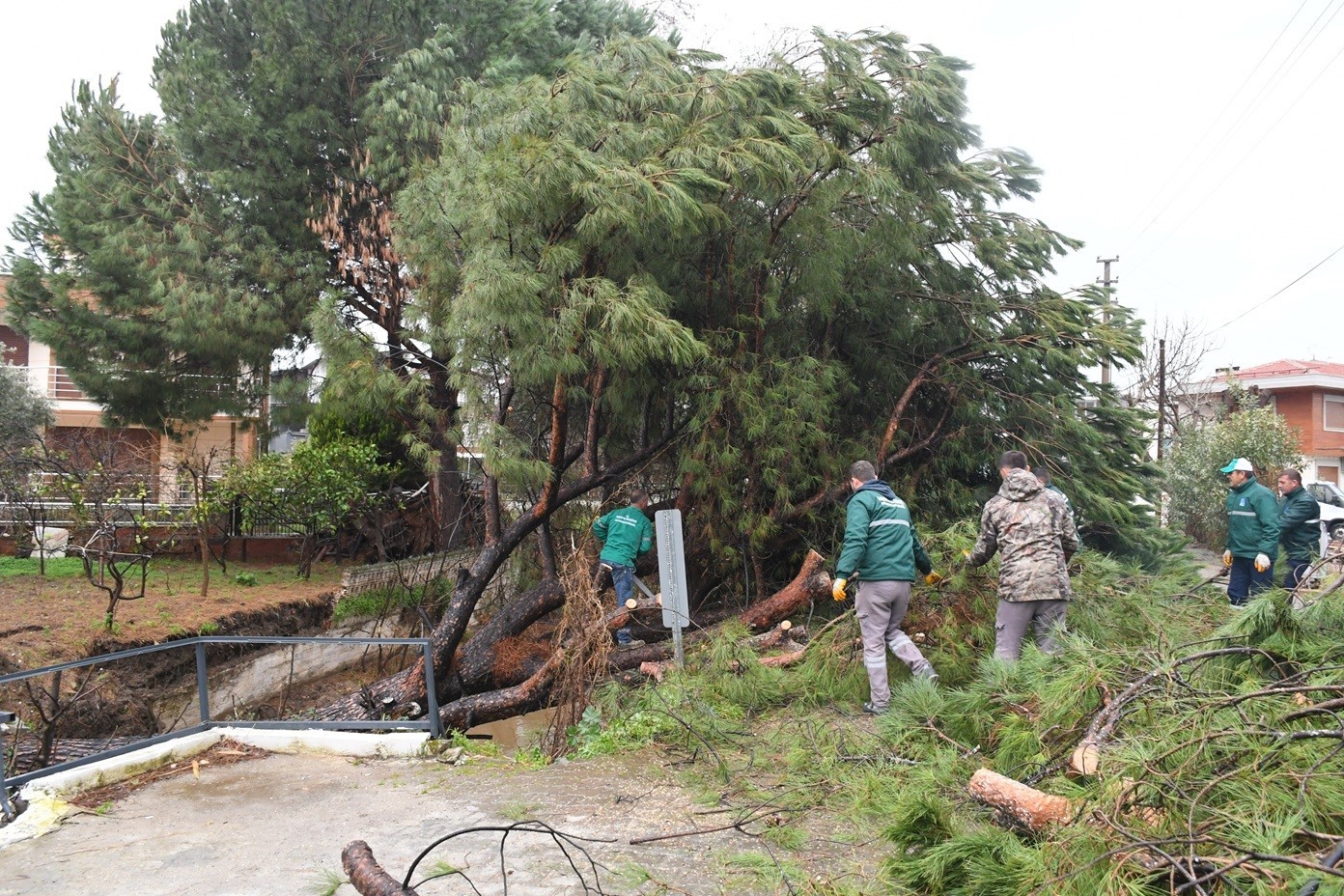 Güzelçamlı Mahallesi’nde günlerdir süren yağışlar nedeniyle köklerinden koparak dere yatağına devrilen çam ağacı, köprü ve yolda maddi hasara yol açtı. Dere yatağının kapanmasıyla artan taşkın riski, belediye ekiplerinin hızlı müdahalesiyle giderildi.