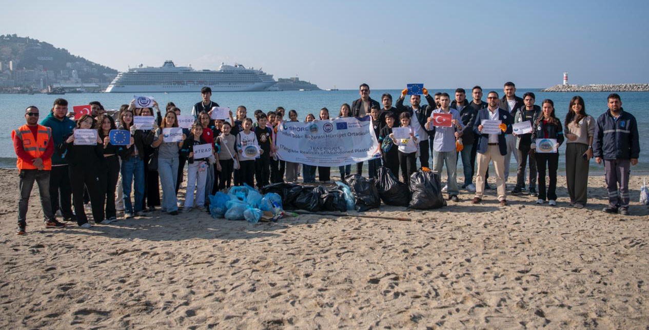 Kuşadası’nda, Söke Bağarası Hürriyet Ortaokulu öğrencileri tarafından kıyı temizliği yapıldı.