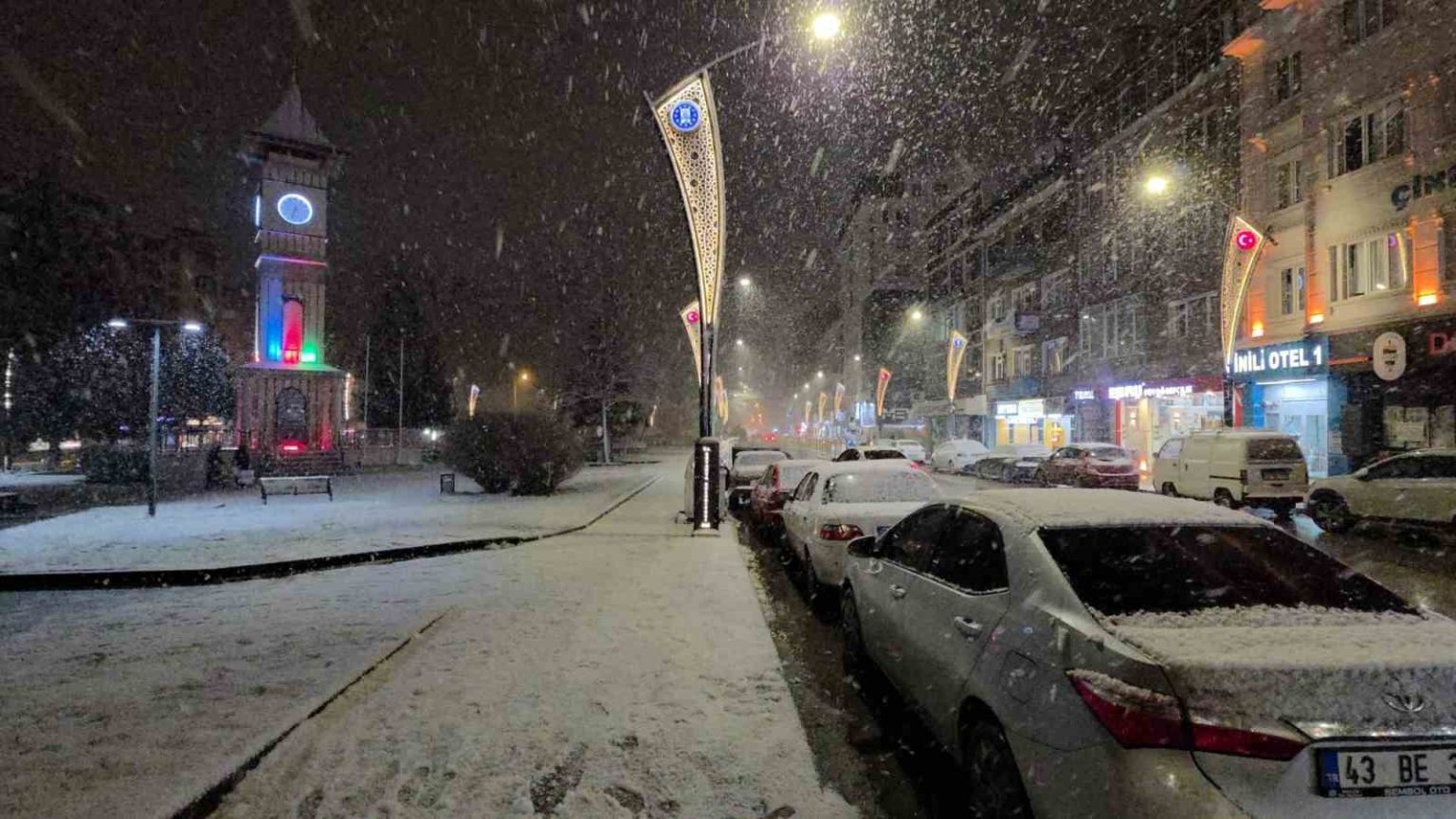 Kar yağışı ile birlikte Kütahya kent merkezi beyaza bürünürken, kartpostallık görüntüler oluşturdu.