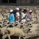Ağıl kapılarının açılmasıyla birlikte annelerine koşan kuzular için günün en lezzetli saati başladı. Hepsi aynı gibi görünse de koku ve sesleriyle birbirlerini bulan kuzular ile annelerinin renkli anlarını öğrenciler de izledi.