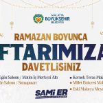 Büyükşehir Belediyesi, Ramazan’ın paylaşma ruhunu yaşatmak amacıyla şehrin farklı noktalarında iftar sofraları kurarak vatandaşları aynı gönül sofrasında buluşturacak. Ramazan ayı boyunca vatandaşların iftarlarını birlikte açabilmeleri için Çırağan Düğün Salonu, Çağrı Düğün Salonu, Malatya Millet Bahçesi Malatya Sofrası, Kernek Şelalesi Malatya Sofrası, Eski Malatya Meydanı noktalarında her gün iftar yemeği ikramında bulunulacak.