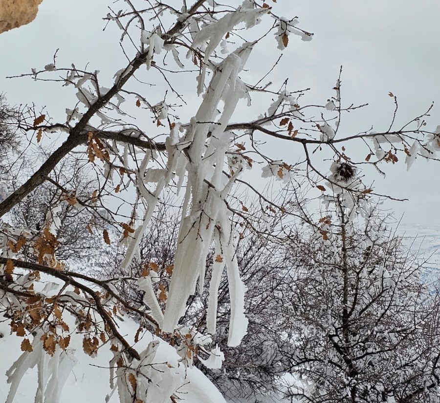 Malatya’da etkili olan dondurucu soğuklar nedeniyle ağaçlar, bitkiler ve akarsular buz tuttu.
