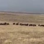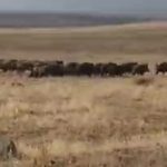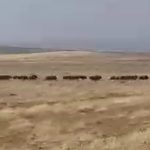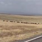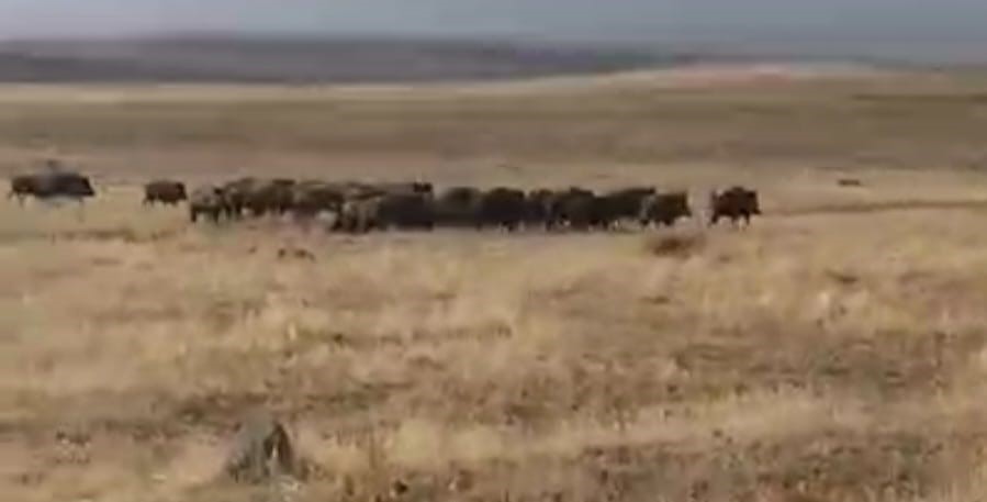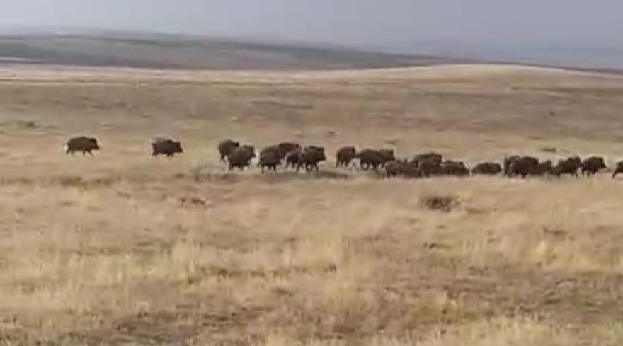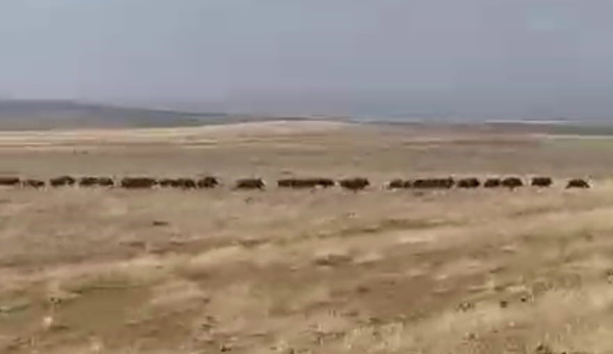 Muş’un Malazgirt ilçesinde büyük bir yaban domuzu sürüsü görüntülendi.