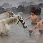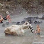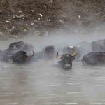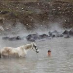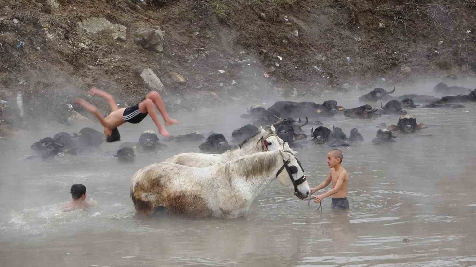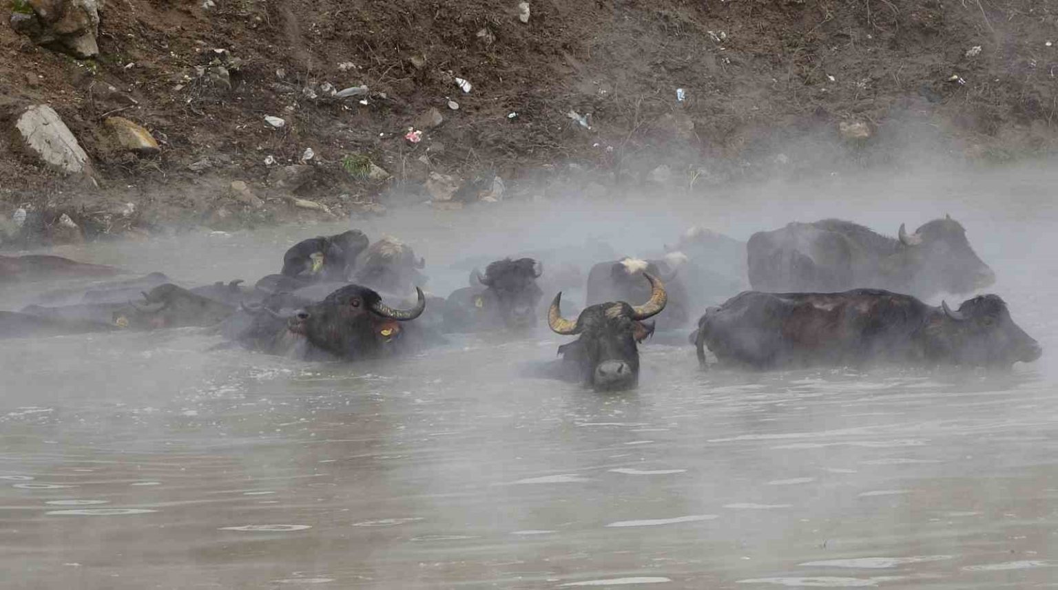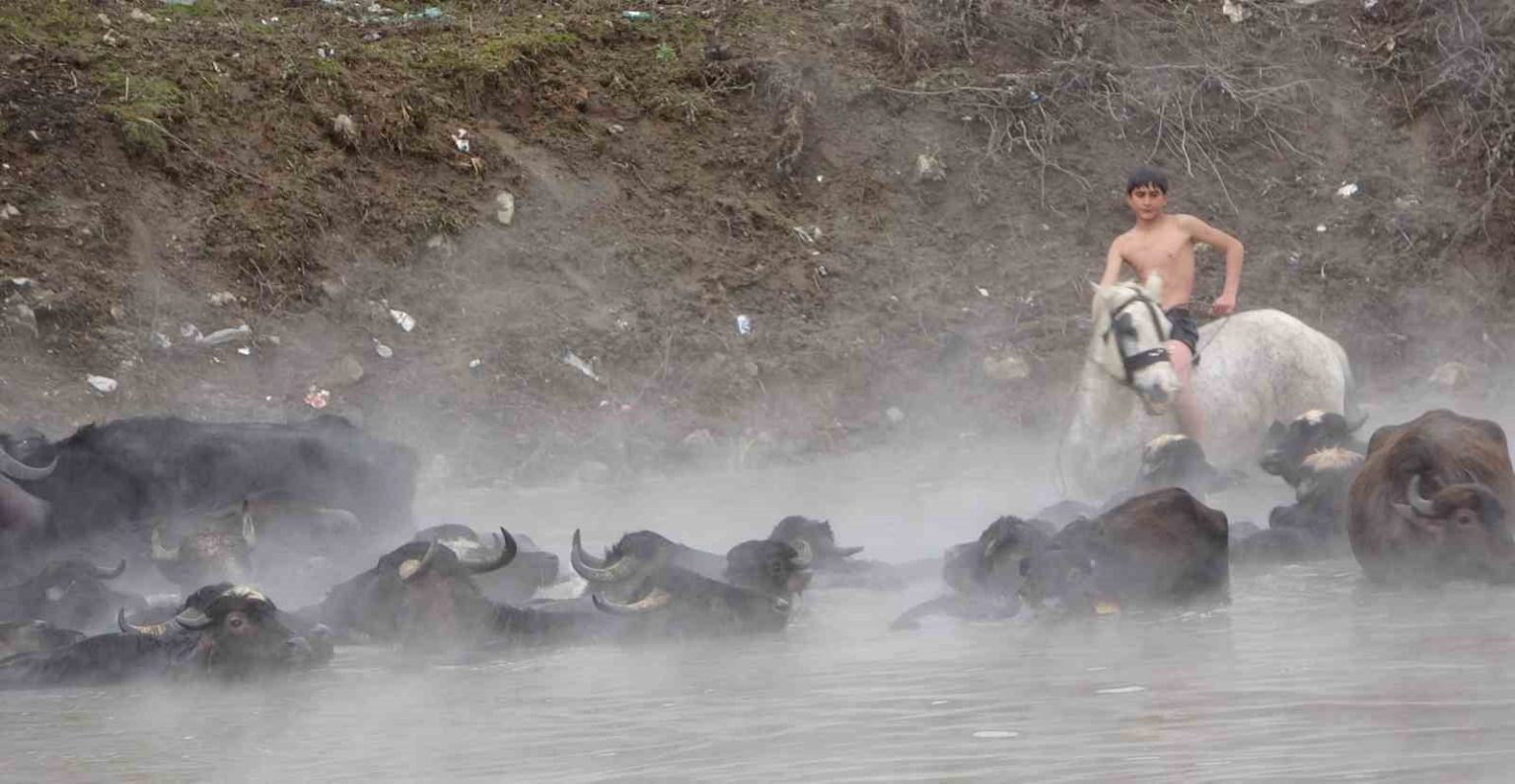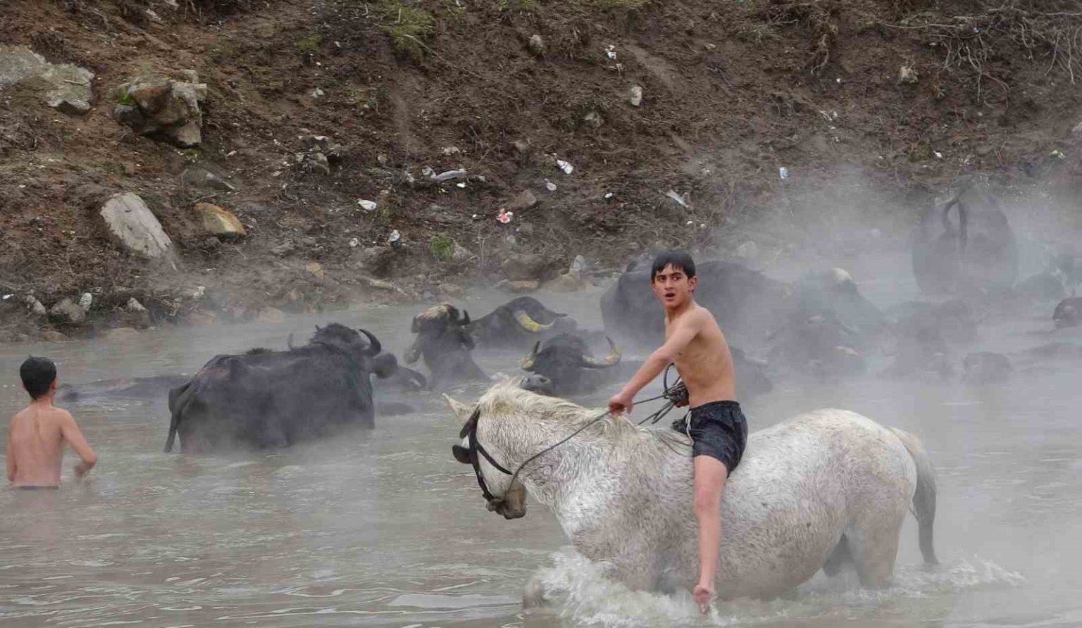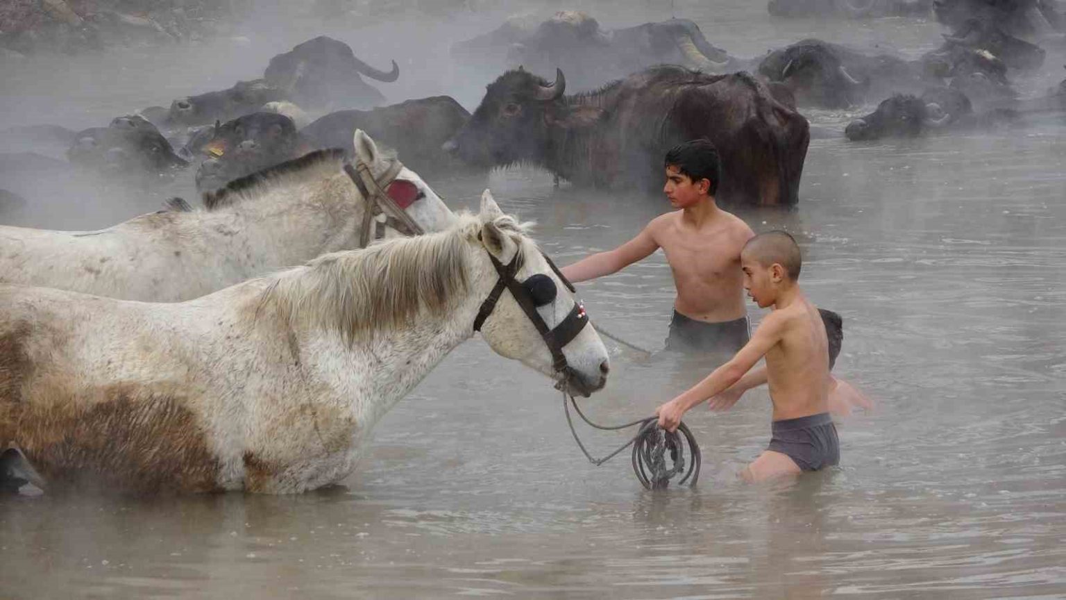 Sıcak su kaynaklarında yıkanan hayvanlar, özellikle fotoğraf tutkunlarının ilgi odağı haline geldi. Bölgedeki besiciler tarafından kaplıca alanına getirilen manda ve atlar, şifalı olduğu bilinen termal sularda temizleniyor. Soğuk havaya rağmen sıcak suyun içinde sakin bir şekilde bekleyen hayvanlar, buharın da etkisiyle etkileyici görüntüler oluşturuyor.