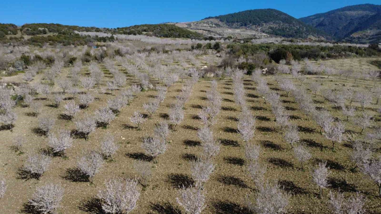 İlçede toplam 3 bin 500 dekar arazide gerçekleştirilen profesyonel badem yetiştiriciliği meyvelerini vermeye devam ediyor.
