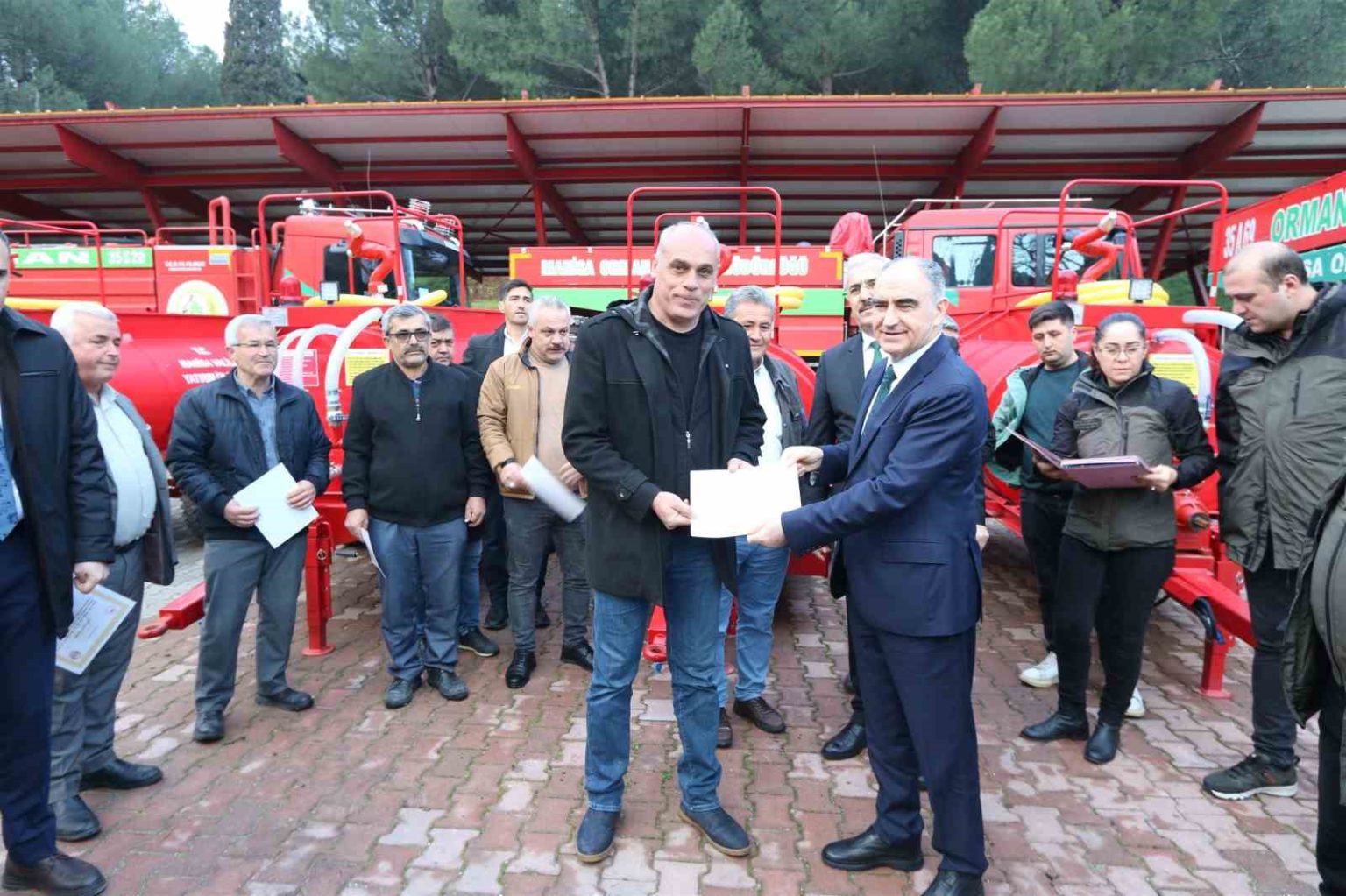 Toplantının ardından Yangın Risk Azaltma Eylem Planı kapsamında, Yatırım İzleme ve Koordinasyon Başkanlığı (YİKOB) tarafından temin edilen 40 adet su tankeri, yaz ayları öncesinde kırsal mahallelerde görev yapan muhtarlara teslim edildi.