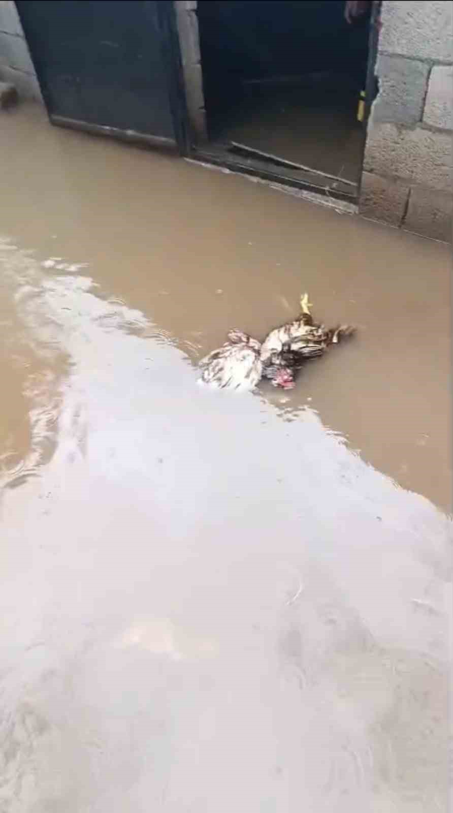 Mardin’in Artuklu ilçesinde etkili olan yağışın ardından bir kümeste su baskını meydana geldi. Olayda kümeste bulunan 5 tavuk telef oldu.