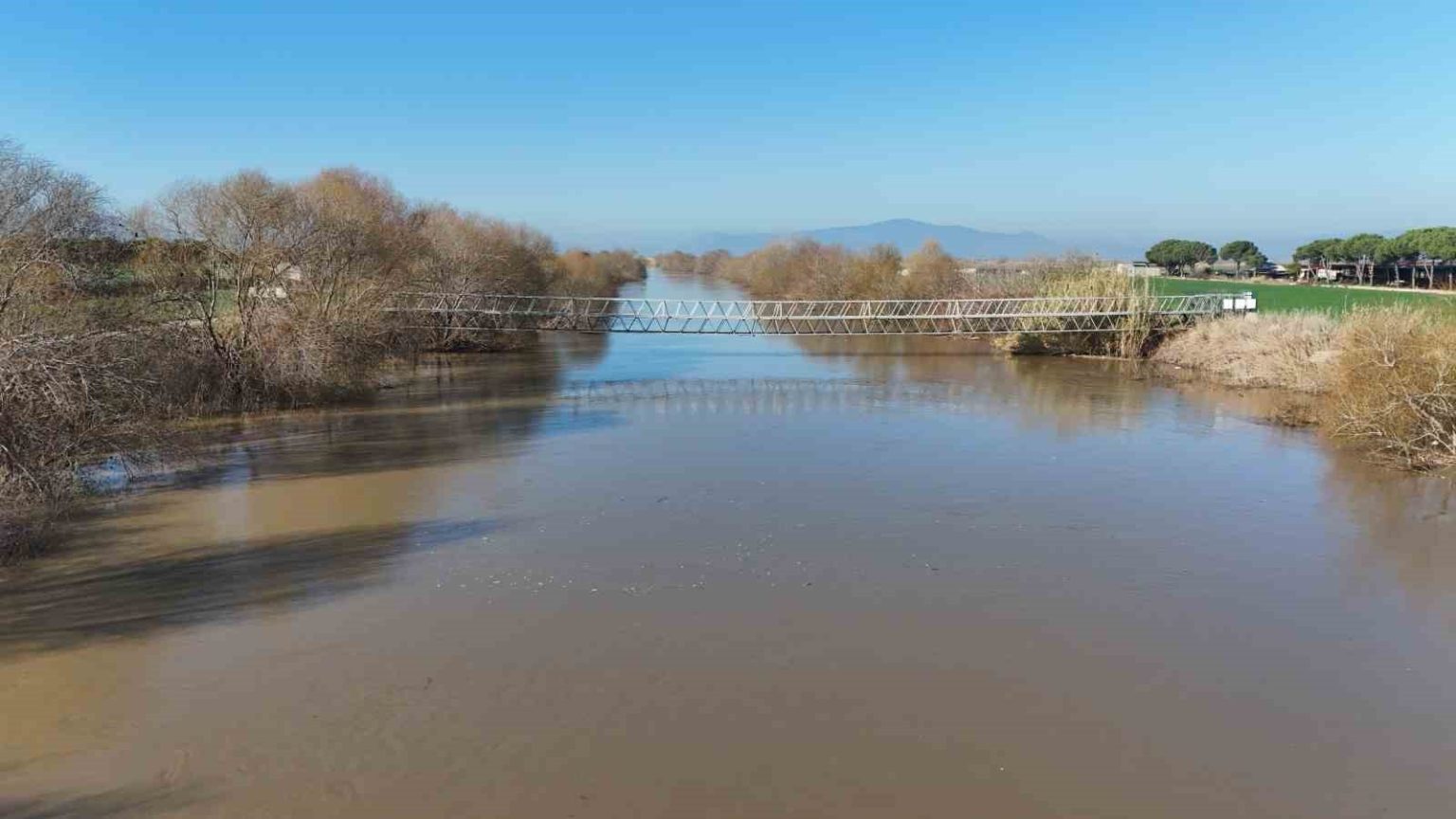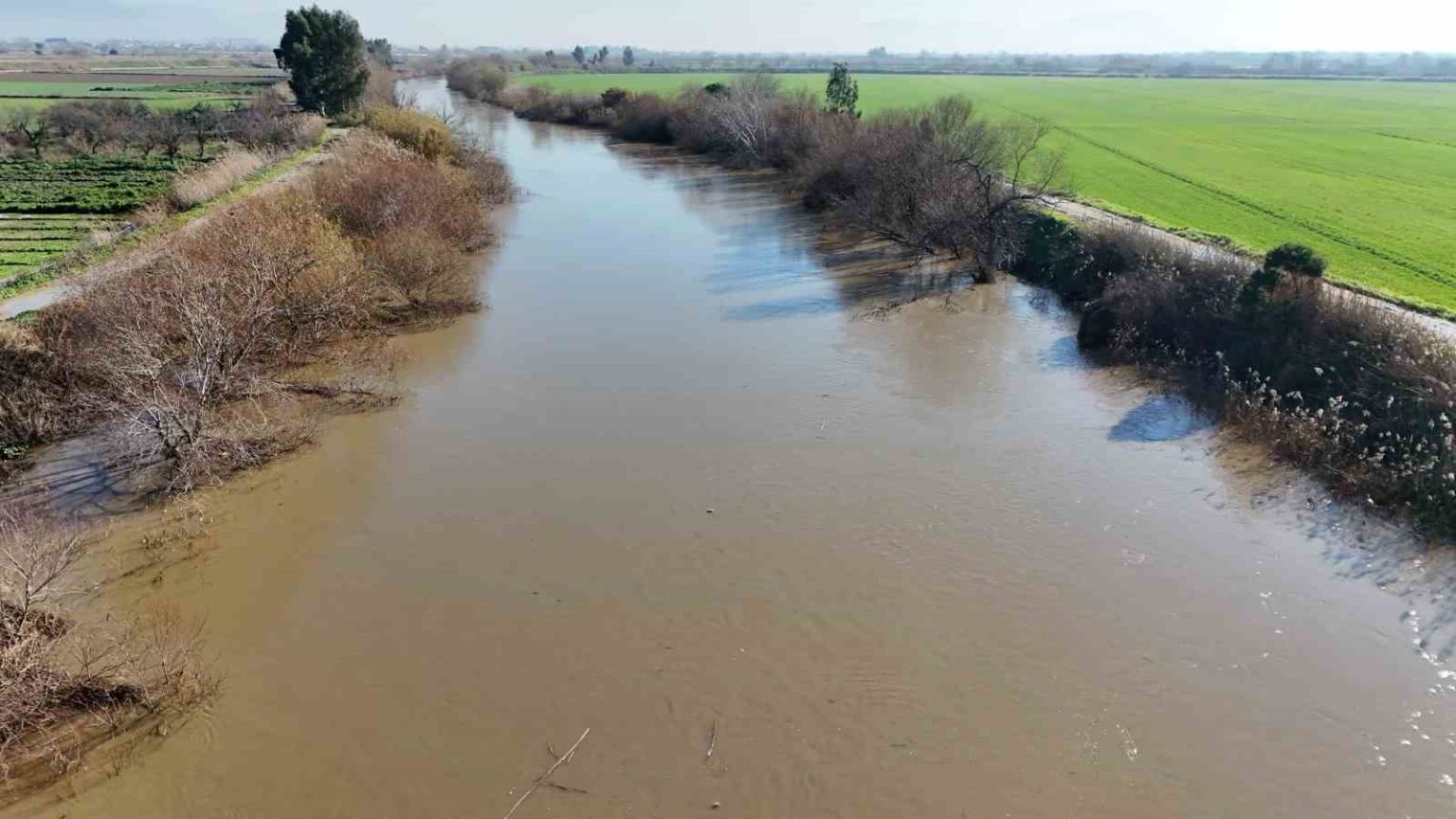 Kentte son günlerde aralıksız devam eden yağışlar Büyük Menderes Nehri’nin debisi hızla yükseltti. Bazı bölgelerde su seviyesi kritik noktalara ulaştı. Özellikle nehre yakın tarım arazilerinde taşkın riski oluşurken, ekipler olumsuzluklara karşı teyakkuz haline geçti. Büyük Menderes Nehri’nin bazı kesimlerinde yatağından taşan sular çevredeki arazilere yayıldı. Tarın alanlarında zarara neden olan taşkınlar sonrası ekipler bölgede çalışma başlattı. Yetkililer vatandaşları nehir kenarına yaklaşmamaları konusunda uyarırken, yağışların aralıklarla devam edebileceği ifade edilerek ani sel ve su baskınlarına karşı dikkatli ve duyarlı okunması gerektiğini belirtti. Meteoroloji yetkilileri ise bölgede yağışların aralıklarla devam edebileceğini ifade ederek, ani sel ve su baskınlarına karşı dikkatli olunması çağrısında bulundu.