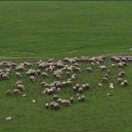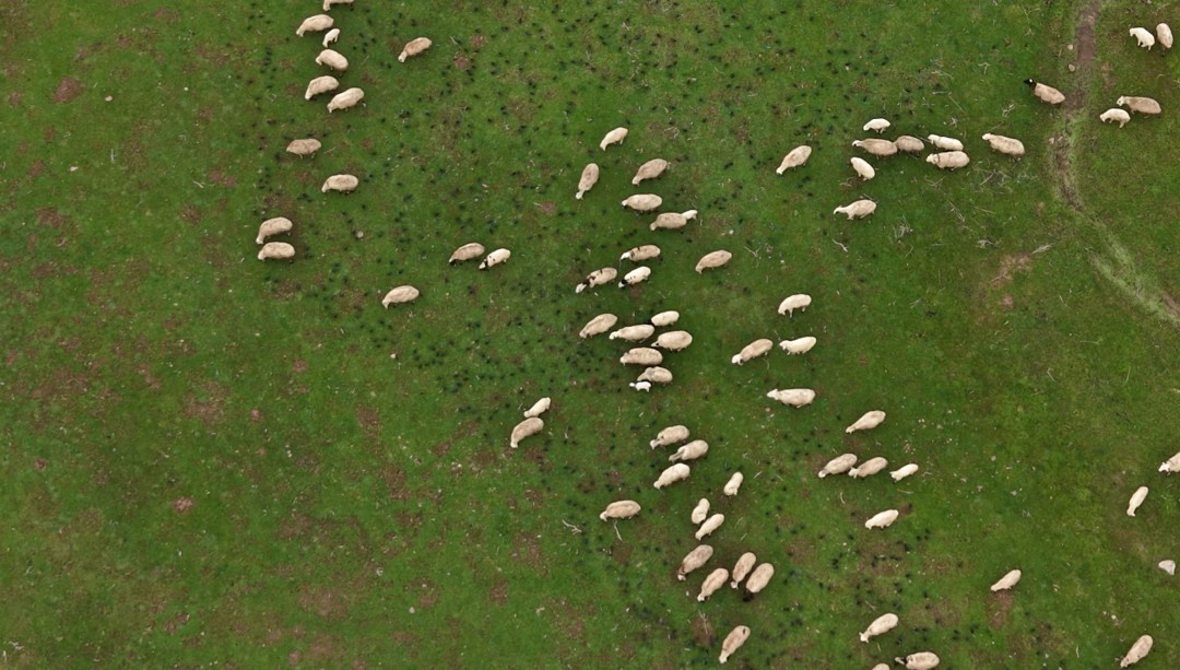 Koyunların üzerinde uçan sığırcık kuşları görsel şölen sundu