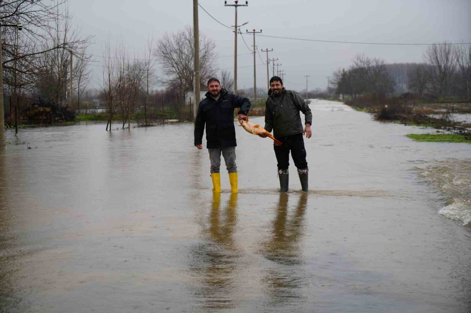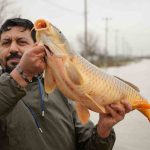 Meriç Nehri’nin taşmasıyla bazı vatandaşlar tarlasında canlı sazan balığı yakaladı