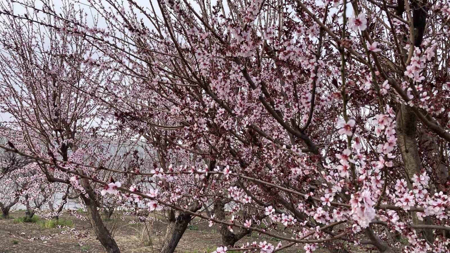 Öte yandan, kayısı ağaçlarının çiçekleri de ayrı bir güzellik oluşturdu.