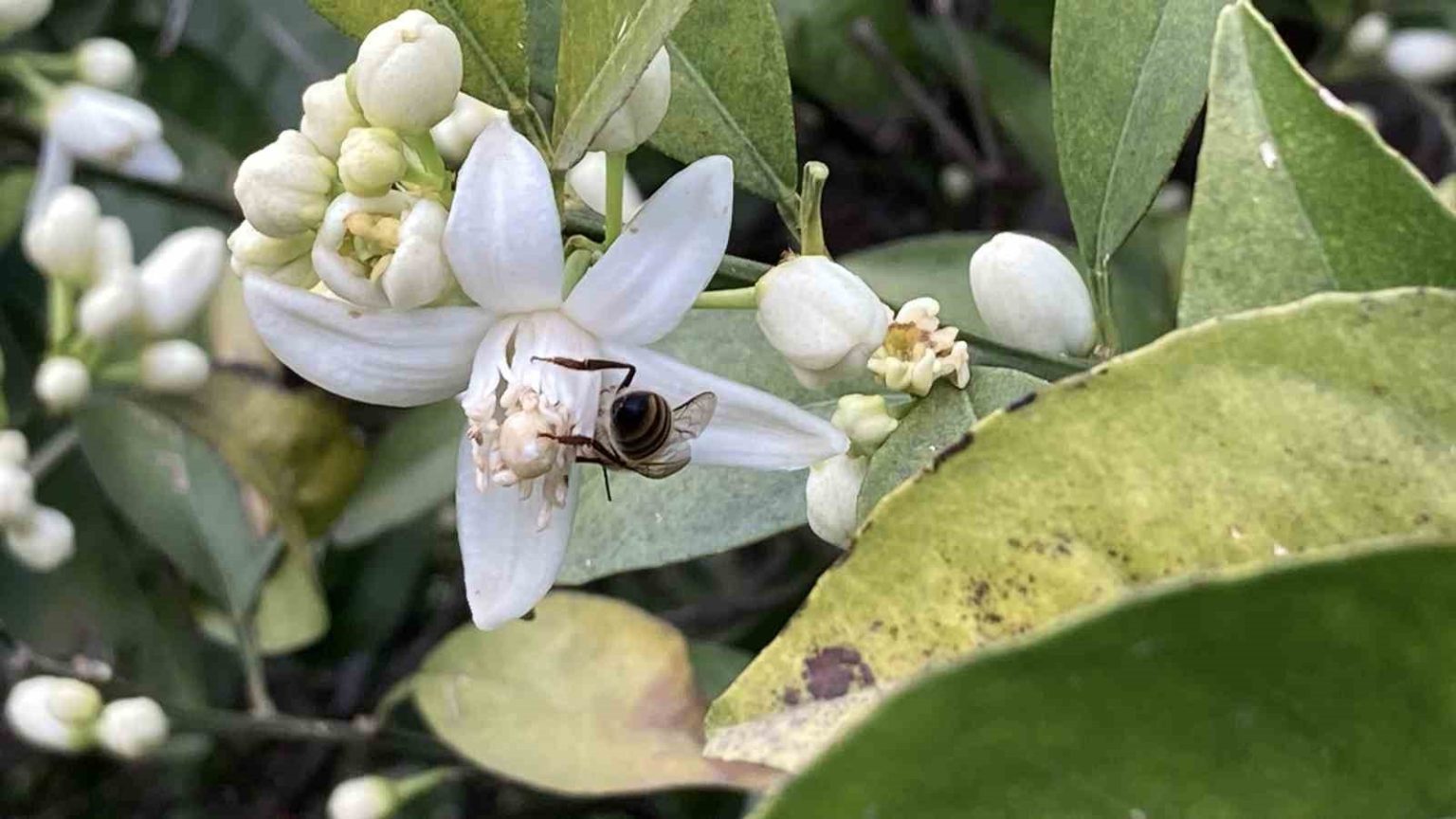 Türkiye’de narenciye üretiminde ikinci sırada yer alan Mersin’de sezonda yaklaşık 1 milyon 660 ton civarında ürün elde ediliyor. Her yıl ekim ve kasım aylarında limondan, portakala kadar bir çok narenciyede başlayan hasat ise mart ayı sonunda büyük ölçüde tamamlanıyor. Bir çok narenciye ürününde olduğu gibi portakalda da hasat sonu yaklaştı. Geç meyve verenlerin son hasatlarının yapıldığı bugünlerde ağaçlarda yeniden çiçekler açmaya başladı. Meyvesi dalında olan ağaçların da çiçekler açmasıyla çevreye güzel kokular yayılmaya başladı. Arıların polen topladığı çiçekler, görsel güzellik de oluşturdu.