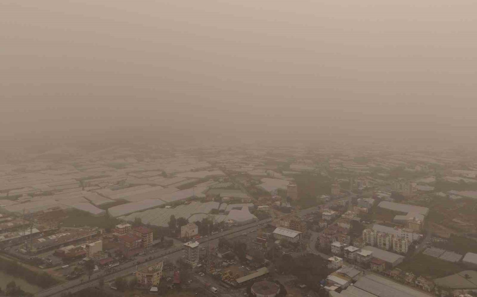 Toz taşınımı özellikle açık alanlarda ve yüksek kesimlerde daha yoğun hissedildi. Anamur ilçesinde dron ile görüntülenen toz fırtınasında, seralar puslu havada kayboldu, görüş mesafesi 100 metrenin altına düştü. Gökyüzünü kaplayan toz bulutları çevreyi kızıla bürürken, kent genelinde görüş mesafesinin belirgin şekilde azaldığı dikkat çekti.