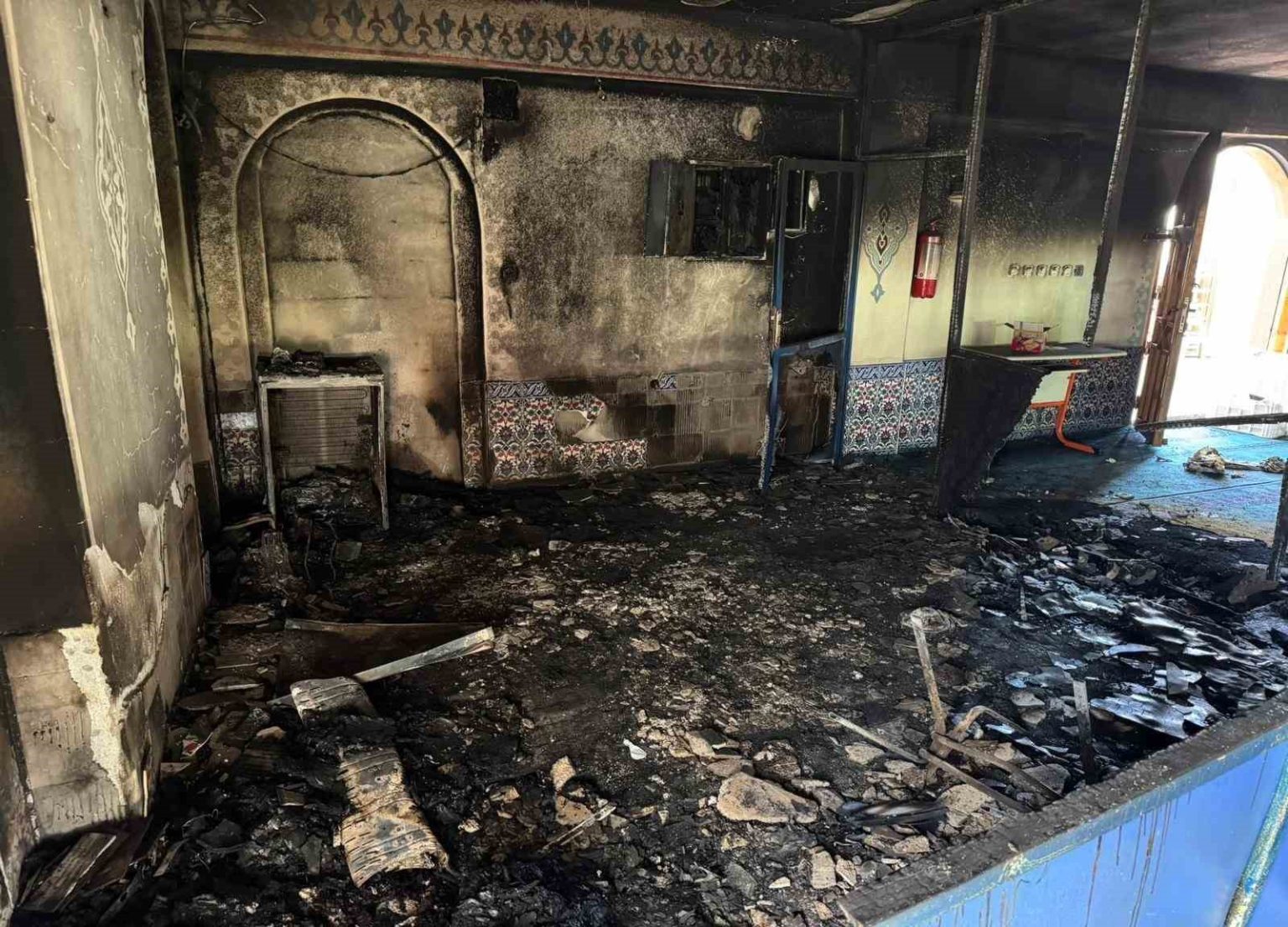 Yangın nedeniyle camide bulunan halıların bir kısmı ile imam odasında hasar oluşurken, caminin tamamının dumandan etkilendiği öğrenildi.