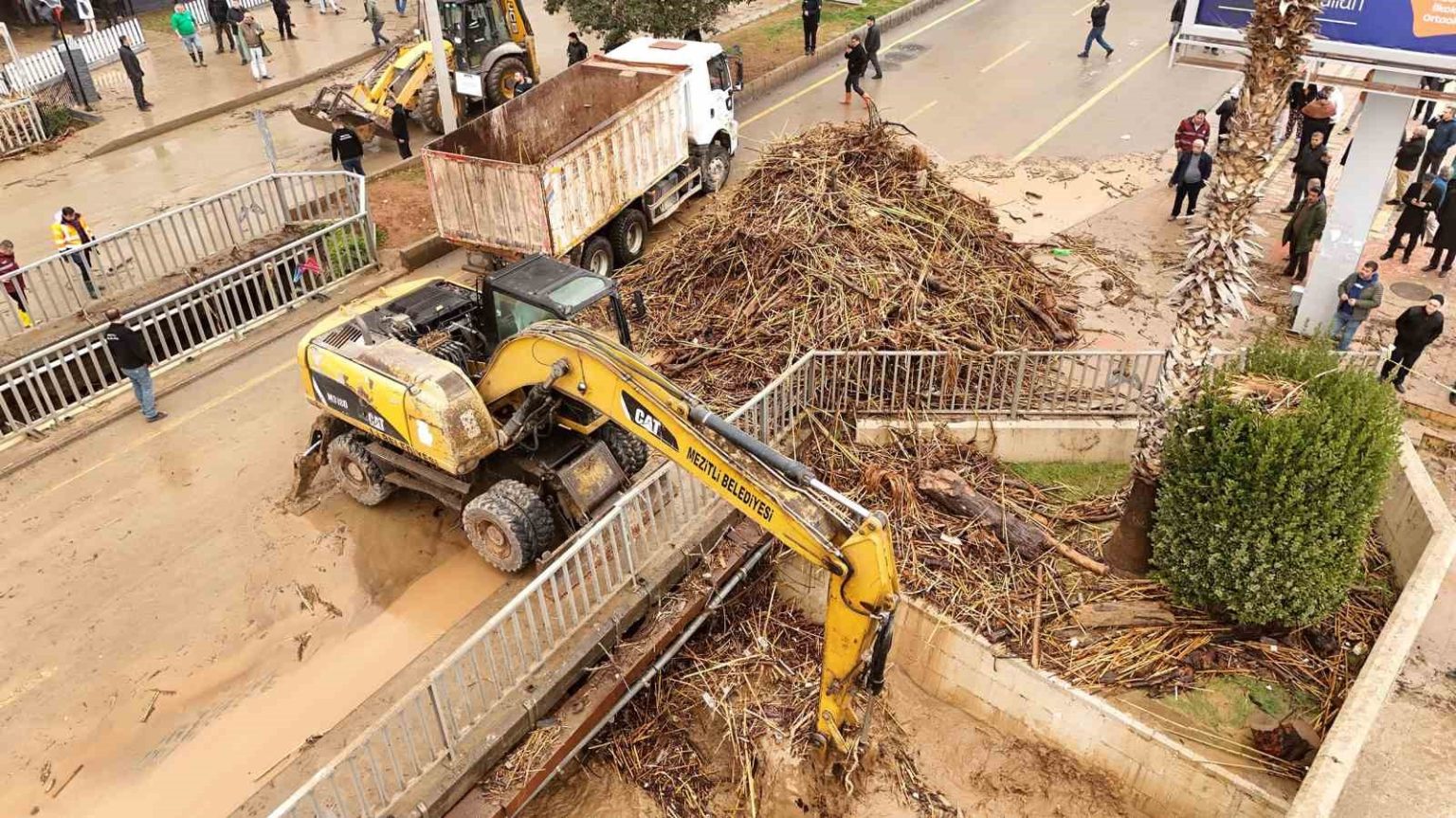 Kent genelinde taşkın yaşanan bölgelerde, şiddetli yüzey akıntısıyla sürüklenen çakıl, toprak ve odun atıkları ekiplerince iş makineleri yardımıyla temizlendi. Mersin Büyükşehir Belediyesi bünyesinde oluşturulan Kriz Merkezi koordinasyonunda yürütülen çalışmalarla, vatandaşların can ve mal güvenliğinin korunması hedeflendi.