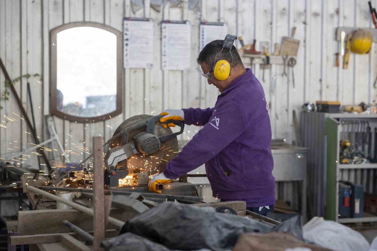 Mersin Büyükşehir Belediyesi Kadın ve Aile Hizmetleri Dairesi Başkanlığı’nda görev yapan Marangoz Ustası Teslime Özdemir, Tarsus Gençlik Kampı Geri Dönüşüm Atölyesi’nde 2020’den bu yana, birimlerin malzemelerini ürettiklerini anlatarak, “Birimlerimizden gelen ürünlerin bakım, onlarım ve tamir işlerini bu atölyede yapıyoruz. Geri dönüşüm atölyemizde birimlerimizin ihtiyacı olan masa, sandalye, dolap ve büro malzemelerinden tutun, akla gelecek her türlü ihtiyacı üretiyoruz. 2020’den 2025 yılına kadar daire başkanlığımıza bağlı 40 birim açıldı. Bu birimlerden 38’inin malzemeleri burada üretildi. Diğer dairelerden gelen talepleri de elimizden geldiğince yerine getirmeye çalışıyoruz” ifadelerini kullandı.