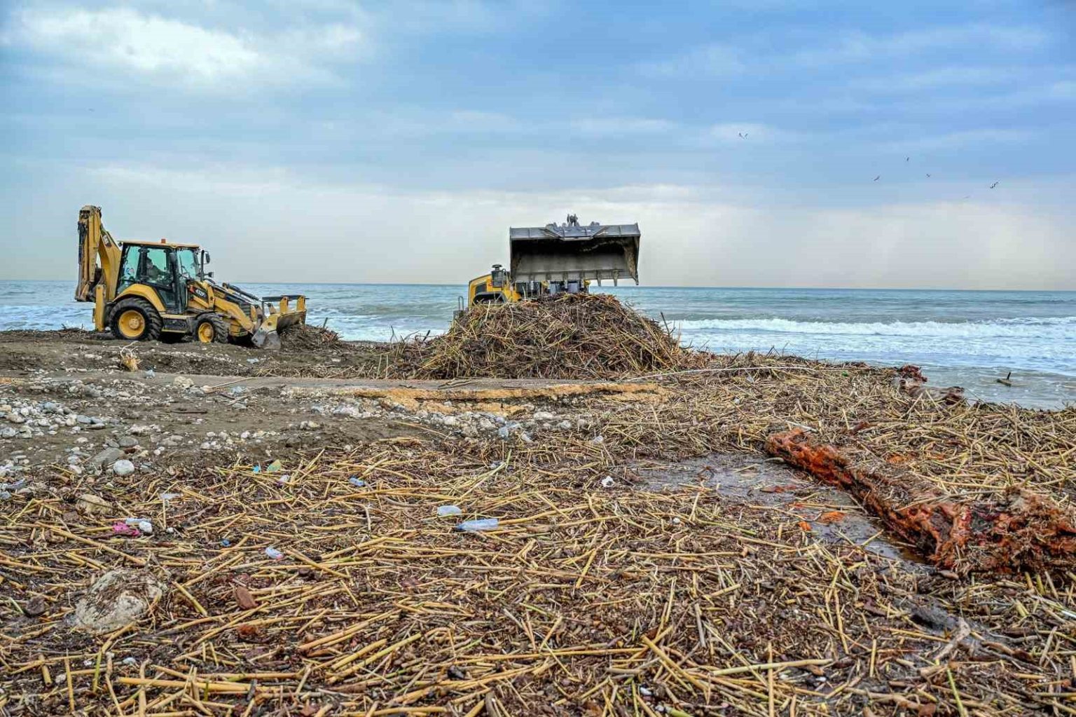 Mersin’de geçtiğimiz hafta cuma günü etkili olan aşırı yağışların ardından sahillerde ve dere yataklarında oluşan sel kaynaklı atıklar, Büyükşehir Belediyesi ekiplerinin koordineli çalışmasıyla temizlenirken, tahrip olan alanlarda yenileme çalışmaları sürüyor.