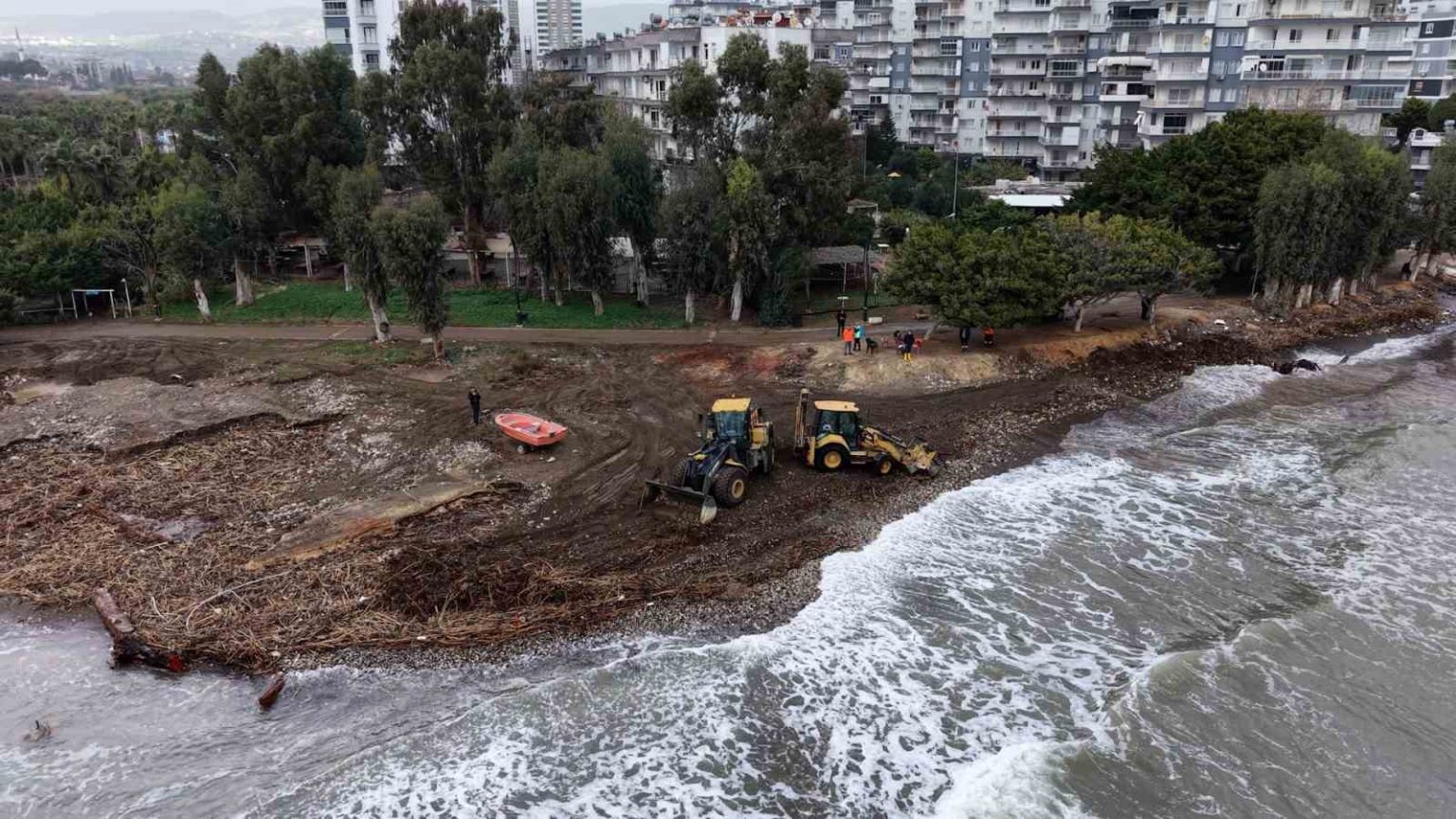 Büyükşehir Belediyesi Park ve Bahçeler Dairesi Başkanlığı ise Adnan Menderes Bulvarı Kültür Park ve çevresinde, taşkın sonrası yüzey akıntısı ile denize ulaşan atıkların temizliğini sürdürüyor. Kayalıklardan toplanan atıklar iş makinaları aracılığıyla taşınırken, tazyikli su ile yürüyüş alanlarının temizliği de sağlanıyor. Temizlik çalışmaları sırasında atıklar arasında mahsur kalan canlılar ise kurtarılarak, doğal yaşam alanlarına sevk ediliyor. Çalışmalar kapsamında sahillerde, taşkın sularının denize taşıdığı kütük, ağaç ve çalılardan oluşan yaklaşık 150 kamyon dolusu atık temizlendi. 8 kilometrelik sahil bandında süren çalışmaların kısa süre içinde tamamlanması hedefleniyor. Kuvvetli yağışlar nedeniyle tahrip olan parklarda ise yenileme çalışmaları devam ediyor.