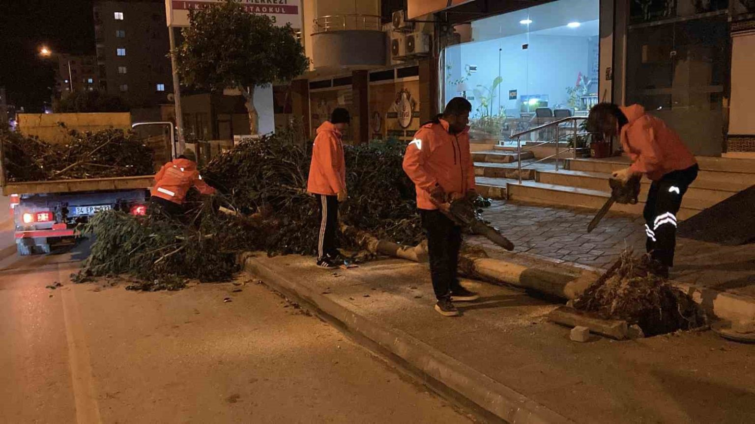 Meteoroloji’nin uyarısını verdiği şiddetli rüzgar Erdemli ilçesinin merkezinde etkili oldu. Kuvvetli rüzgarın etkisiyle Akdeniz Mahallesi’nde bir ağaç kırıldı. Merkez Mahallesi Türbe Caddesi’nde ise 5-6 metrelik bir ağaç kökünden sökülüp kaldırıma devrildi. O anda kaldırımda kimsenin olmaması yaşanabilecek bir olumsuzluğa engel oldu. Belediye ekipleri devrilen ağaçları keserek kısa sürede kaldırdı.