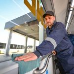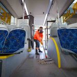 Bu kapsamda, sabah saat 06.00’dan gece 02.00’ye kadar hizmet veren toplu taşıma araçları, sefer öncesinde kapsamlı bir temizlik ve dezenfekte sürecinden geçiyor. Otobüsler sefere çıkmadan önce Büyükşehir Belediyesinin Toplu Taşıma Yerleşkesinde bulunan yıkama bölümünde dış yıkamadan geçiriliyor. Ardından araçların iç kısmında, koltuklar, tutunma barları ve yolcuların temas ettiği tüm yüzeyler titizlikle siliniyor. Temizlik işlemlerinin ardından Sağlık Bakanlığı onaylı biyosidal ürünlerle araçların tamamında dezenfeksiyon çalışması yapılıyor. Mersin Büyükşehir Belediyesi böylece, toplu taşıma araçlarında oluşabilecek salgın ve bulaşıcı hastalık riskini en aza indirmeyi hedefliyor.