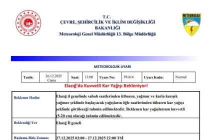 Yapılan son değerlendirmelere göre; bölge genelinde havanın parçalı ve çok bulutlu, aralıklı kar yağışlı geçmesi bekleniyor. Yağışların sabah saatlerinden itibaren Erzincan ve çevrelerinde, öğleden sonra ise Erzurum’un güney kesimlerinde yer yer kuvvetli kar yağışı (5-20 cm) şeklinde etkili olacağı tahmin ediliyor. Sabah ve gece saatlerinde buzlanma ve don olayı görülebileceği bildirildi.