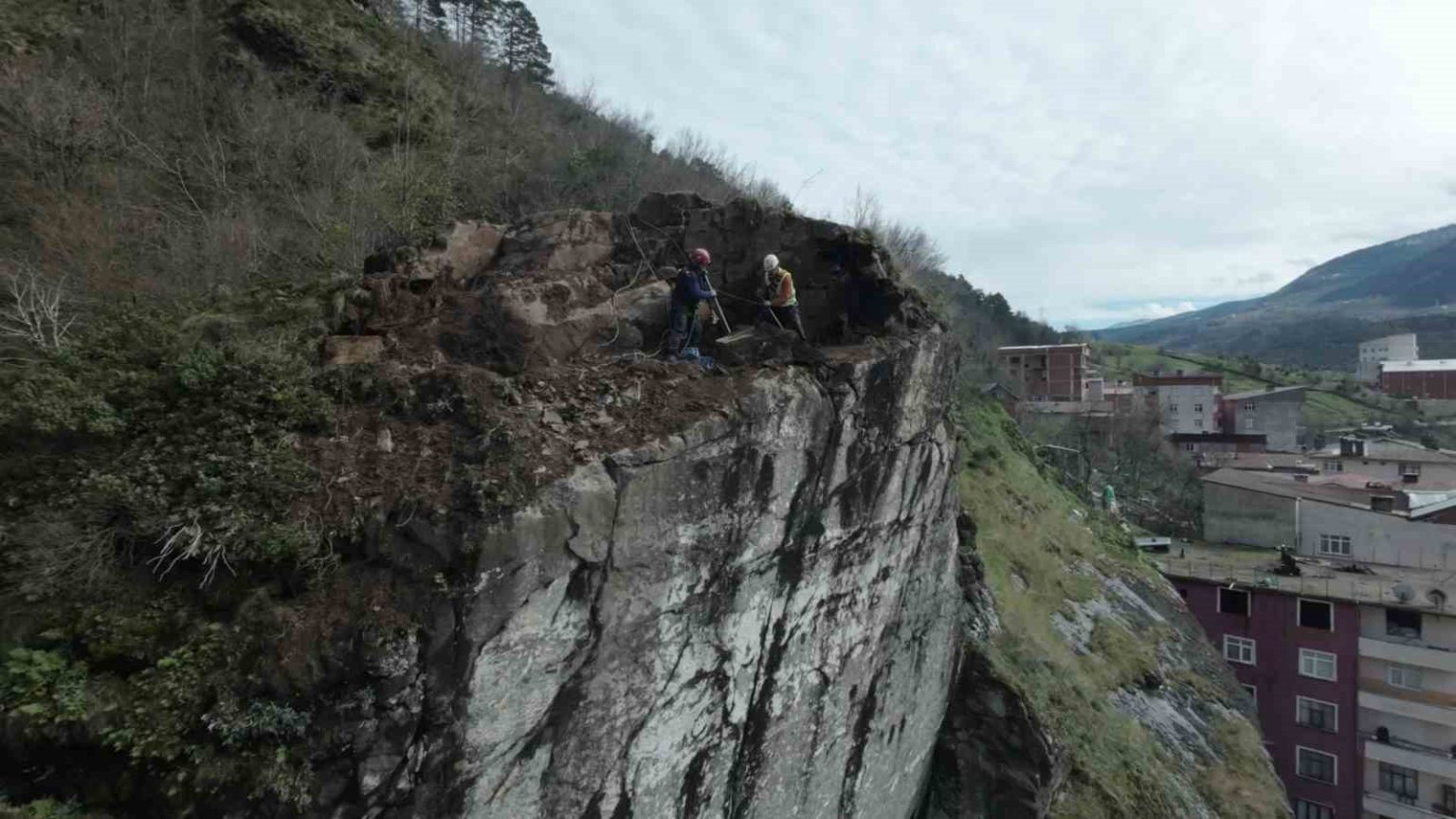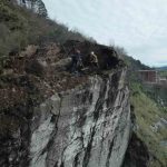Artvin’in Borçka ilçesine bağlı Aksu Mahallesi’nde yıllardır yol güvenliğini tehdit eden dev kaya kütleleri, profesyonel ekipler tarafından kontrollü bir çalışma ile düşürüldü. AFAD koordinesinde yürütülen çalışmalarda endüstriyel dağcılar metrelerce yüksekliğindeki yamaçlara ip sistemleriyle tırmanarak tehlike oluşturan kayalara ulaştı.