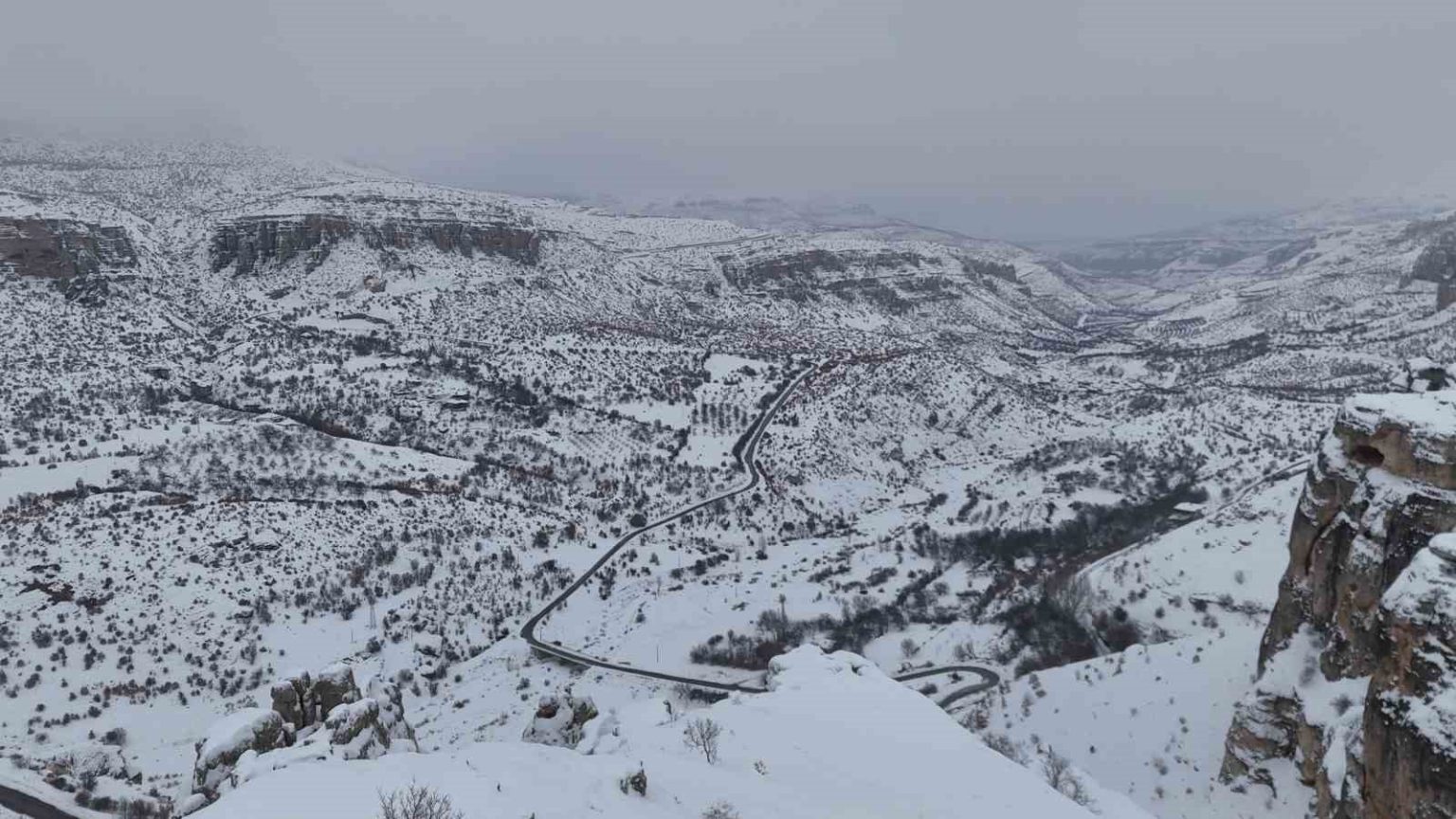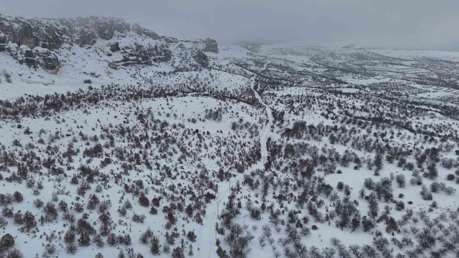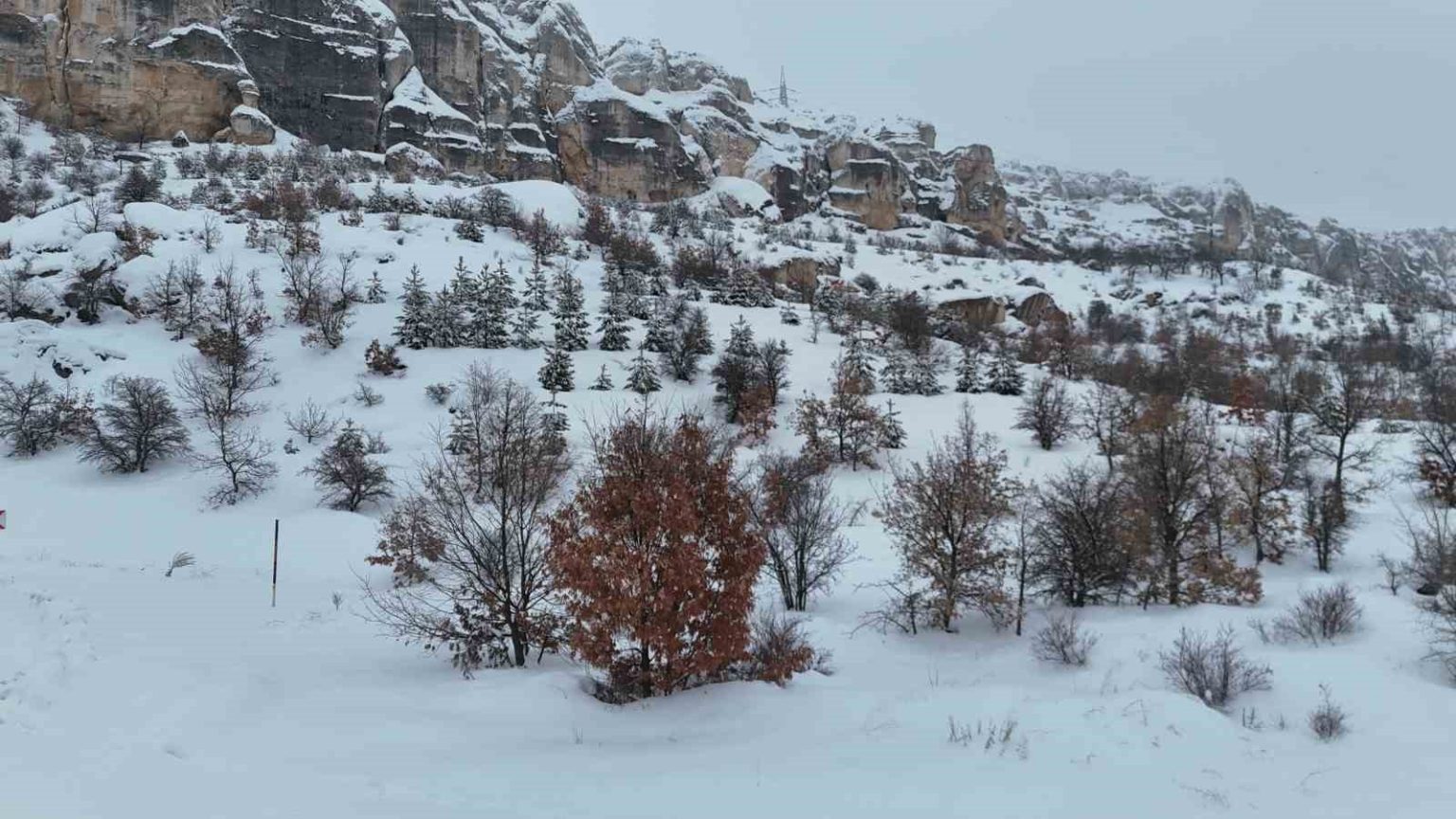 Malatya’nın Akçadağ ilçesinde bulunan ve yaklaşık 65 milyon yıllık jeolojik oluşumuyla dikkat çeken Levent Vadisi, etkili olan kar yağışıyla beyaza büründü.