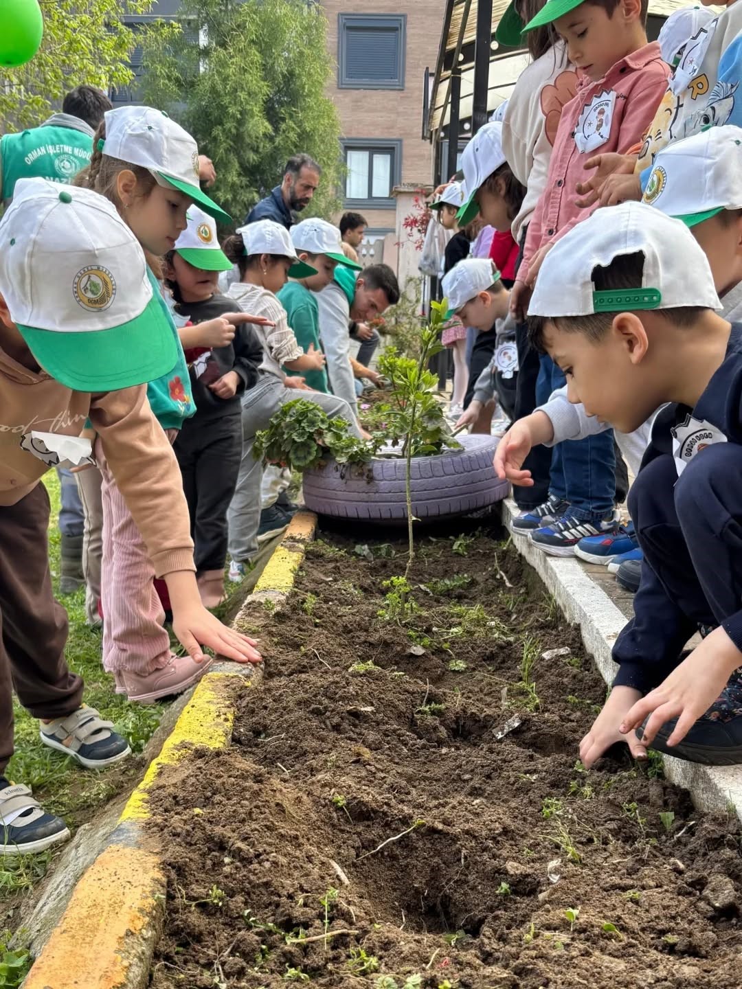 Aydın’ın Yenipazar ilçesinde düzenlenen ’Yeşil Vatan’ etkinliğinde minik eller toprakla buluşurken, anaokulu öğrencileri fidanları toprakla buluşturdu.