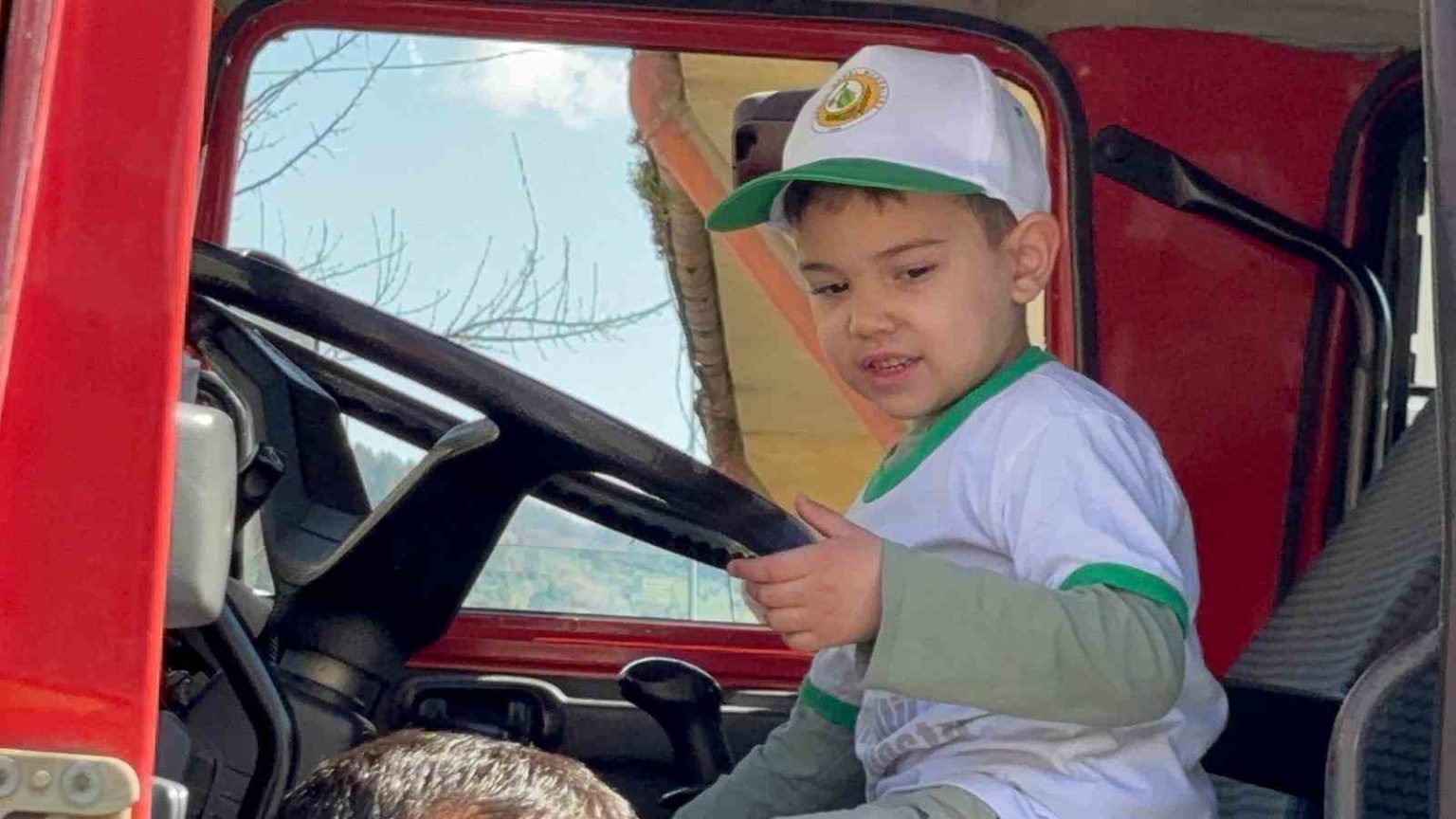 Bartın’ın Ulus ilçesinde Ormancılık Haftası nedeniyle düzenlenen fidan dikim etkinliğinde itfaiye aracı minik öğrencilerin ilgi odağı oldu. İlk kez itfaiye aracına binen öğrenciler siren çalıp, ilgiyle arazözü inceledi.