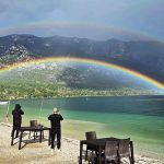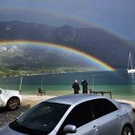 Muğla’nın günübirlik tatil için tercih edilen ender koylarından biri olan Akbük Sahili’nde yağmurun ardından güneşin açmasıyla birlikte gökyüzünde gökkuşağı belirdi. Deniz ve doğa manzarasıyla birleşen rengârenk görüntü, ortaya kartpostallık kareler çıkardı.