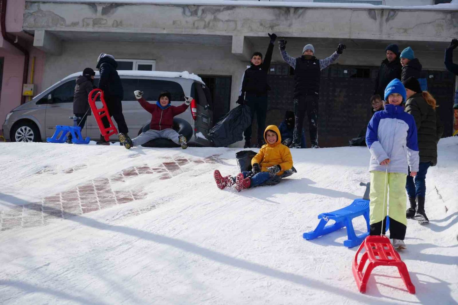 Çocuklar, “Muhtarın Yokuşu”nun oldukça zevkli olduğunu dile getirerek, yokuşta kaymanın Akdağ Kayak Merkezi’nden bile daha eğlenceli olduğunu söyledi.