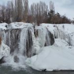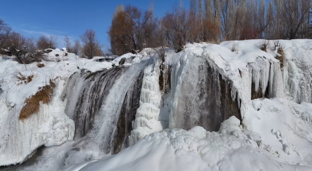 Van’ın doğa harikası Muradiye Şelalesi, dondurucu soğukların ardından adeta bir masal diyarına dönüştü. Hava sıcaklığının sıfırın altına düşmesiyle birlikte şelale buz tutarken, çevresini saran kar örtüsüyle ortaya çıkan manzara ’beyaz gelinlik’ yakıştırmasını bir kez daha haklı çıkardı. Her mevsim binlerce turisti ağırlayan Muradiye Şelalesi, kış mevsiminin gelişiyle birlikte büyüleyici bir görünüme büründü. Bölgede etkili olan kar yağışı ve dondurucu soğuklar, yaklaşık 20 metre yükseklikten akan suları kısmen dondurarak dev buz sarkıtları oluşturdu.