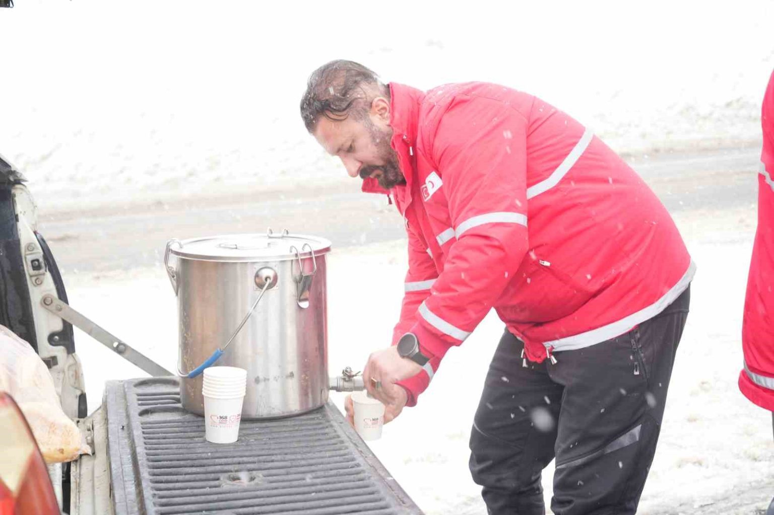 Kızılay ekiplerinin kendilerine çeşitli ikramlarda bulunduğunu söyleyen Hasan kaplan ise, “Erzurum tarafından gelip Malatya tarafına gidiyoruz. Dün gece geldik, burada mağdur kaldık. Karayolları sağ olsun çalışıyor ama bir taraftan da kar yağıyor. Burada da mağduruz; belediyeye, karakola başvurduk. Kızılay’a haber verdik, şoförler yolda kalmış diye. Kar yağışı nedeniyle kaldık. Bize kek ve meyve suyu ikram ettiler” şeklinde konuştu.