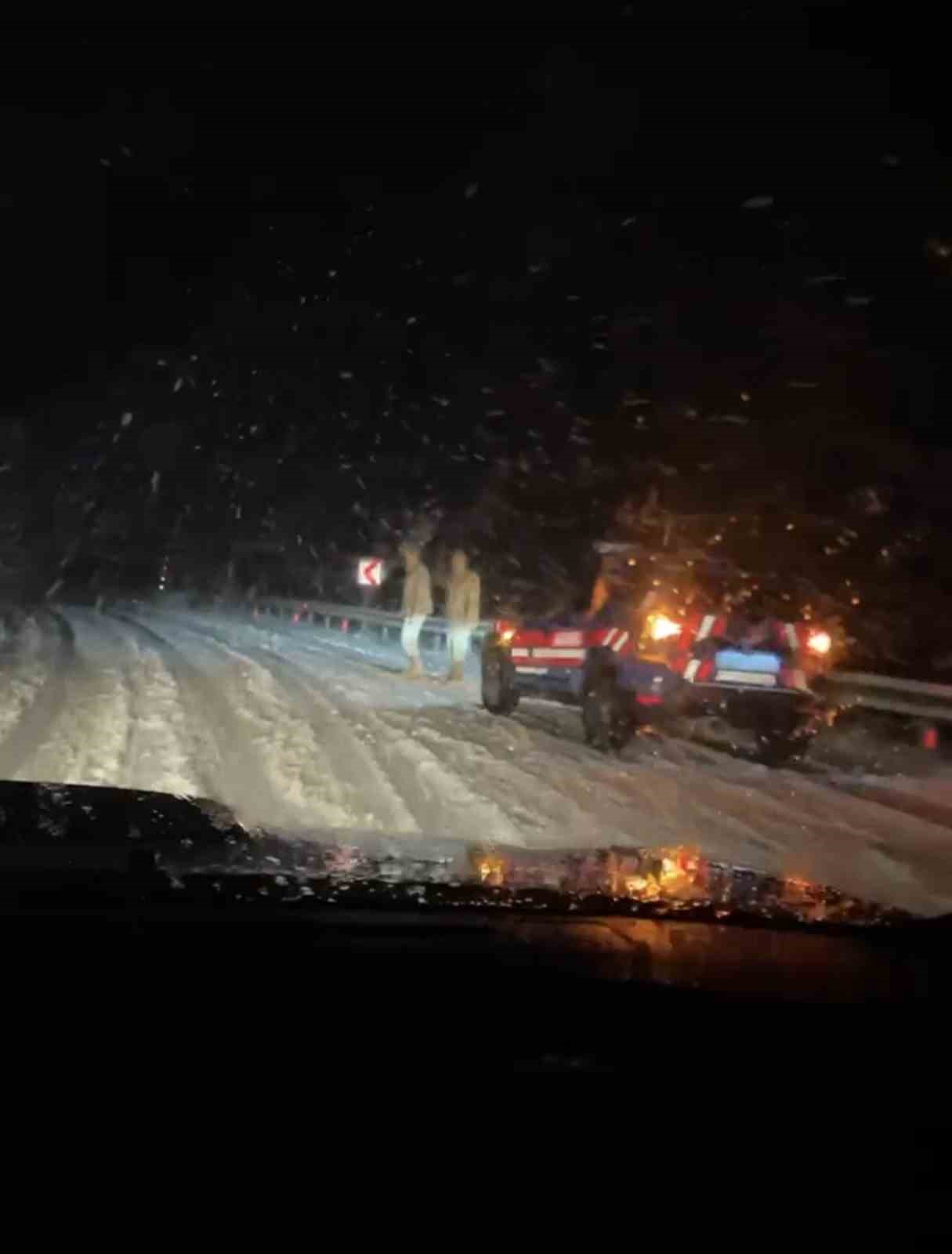 Muş’ta etkili olan kar yağışı nedeniyle rampada mahsur kalan araçlar jandarma ekiplerinin müdahalesiyle kurtarıldı.