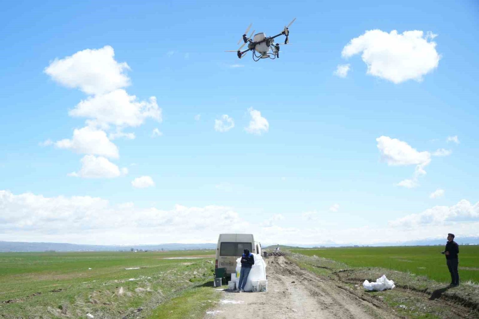 Muş’ta bahar mevsiminin etkisini göstermesiyle birlikte tarımsal çalışmalar yoğunlaştı. Modern tarım tekniklerine yönelen üreticiler, verimliliği artırmak amacıyla teknolojiden faydalanmaya başladı. Bu kapsamda Alparslan Tarım İşletmesine ait geniş arazilerde gübreleme çalışmaları dron desteğiyle gerçekleştirildi.