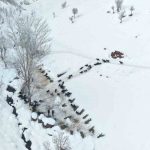 Belirli saatlerde hayvanlarını karla kaplı alanlara çıkaran üreticiler, dondurucu soğuğa rağmen hayvanlarının bakımını aksatmıyor. Kış mevsimiyle birlikte iş yüklerinin iki kat artan besiciler, tüm zorluklara rağmen tek geçim kaynakları olan hayvancılığı sürdürmeye çalışıyor. Besiciler, hayvanlarını sağlıklı bir şekilde bahar aylarına ulaştırabilmek için çetin kış mesaisini aralıksız sürdürüyor.