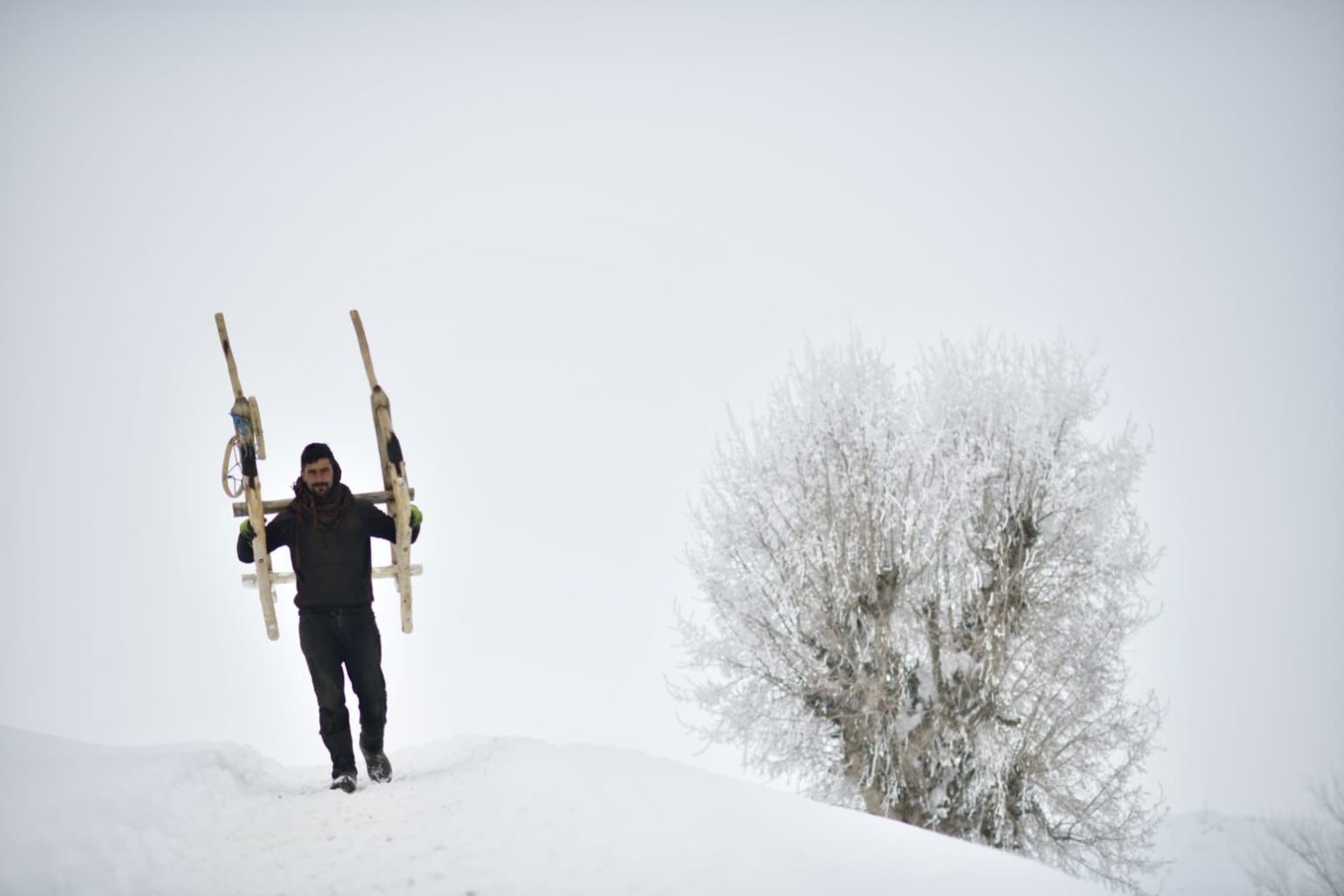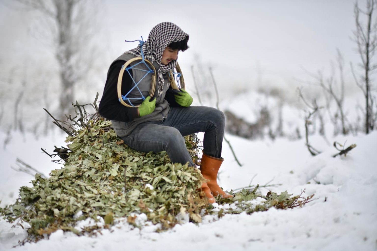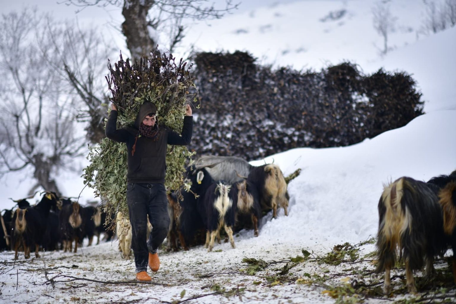 Karabey köyünde besicilik yapan Servan Akar, yaz aylarında topladıkları meşe yapraklarını kış aylarında kızaklarla taşıyarak havanların olduğu bölgeye ulaştırdıklarını söyleyerek, “Biz burada aile olarak hayvancılık yapıyoruz. Yaz aylarında topladığımız meşe yapraklarını şimdi kızaklarla taşıyoruz ve hayvanlara yem olarak veriyoruz. Günde iki kere tepeye tırmanıyoruz, oradan da günde iki sefer kızakla yük getiriyoruz. Tabii zor oluyor. Bazen kızağın altında kalıyoruz, bazen devriliyor. Kızaklarla getirdiğimiz yaprakları burada hayvanlara veriyoruz. Bu şekilde hayvanları besliyoruz ama gerçekten çok zor. Hayvancılık zaten zor bir meslek. Kış da çetin geçiyor; kar çok, hava çok soğuk. Ama mecburuz, beslemek zorundayız. Başka yapacak bir şey yok. Yazın yol olmadığı için traktör çıkamıyor, araziler dik yamaçlı. Biz de yazın yaprakları toplayıp, kışın kızaklarla çekerek hayvanlarımızı bu şekilde besliyoruz” dedi.